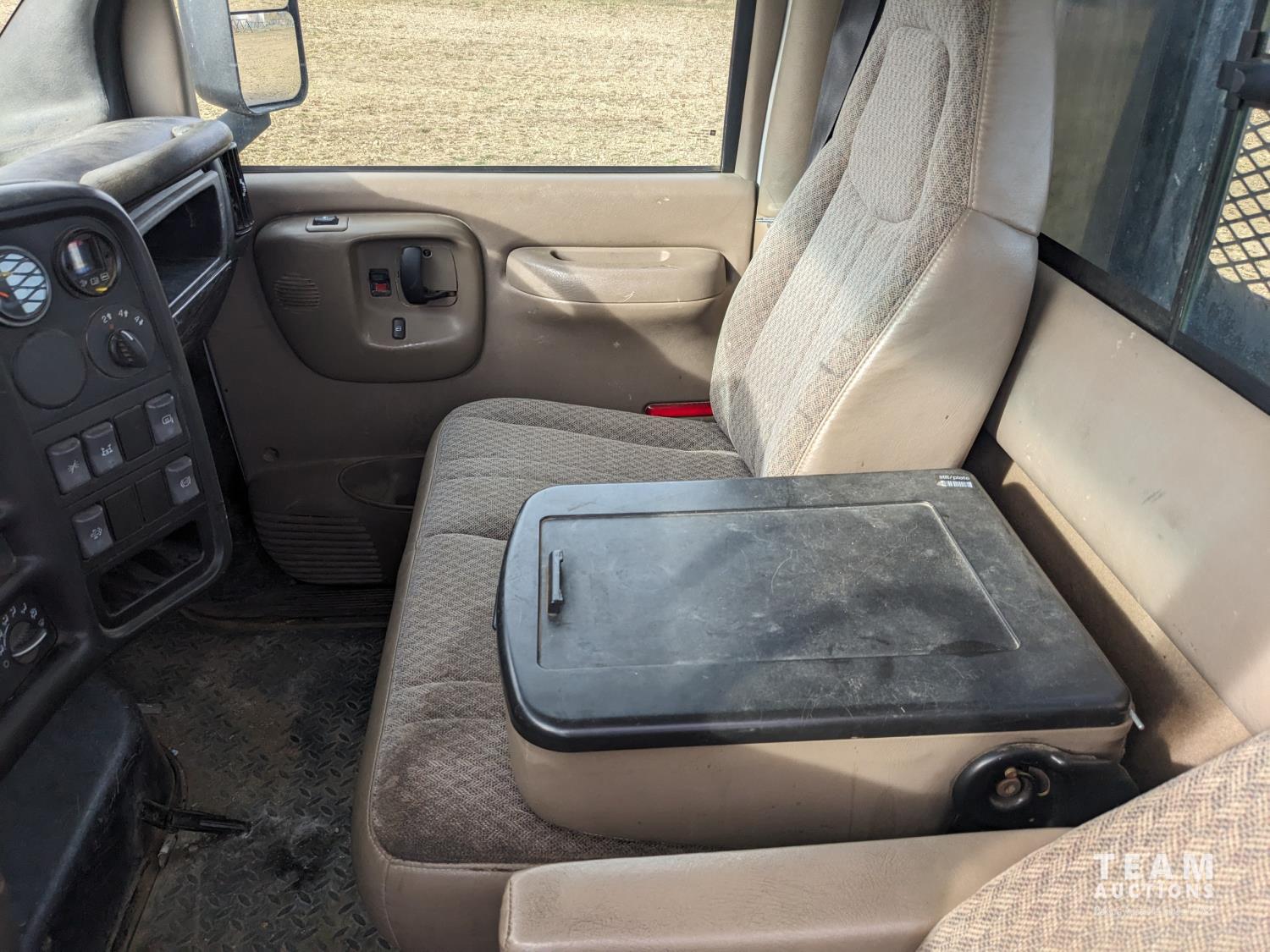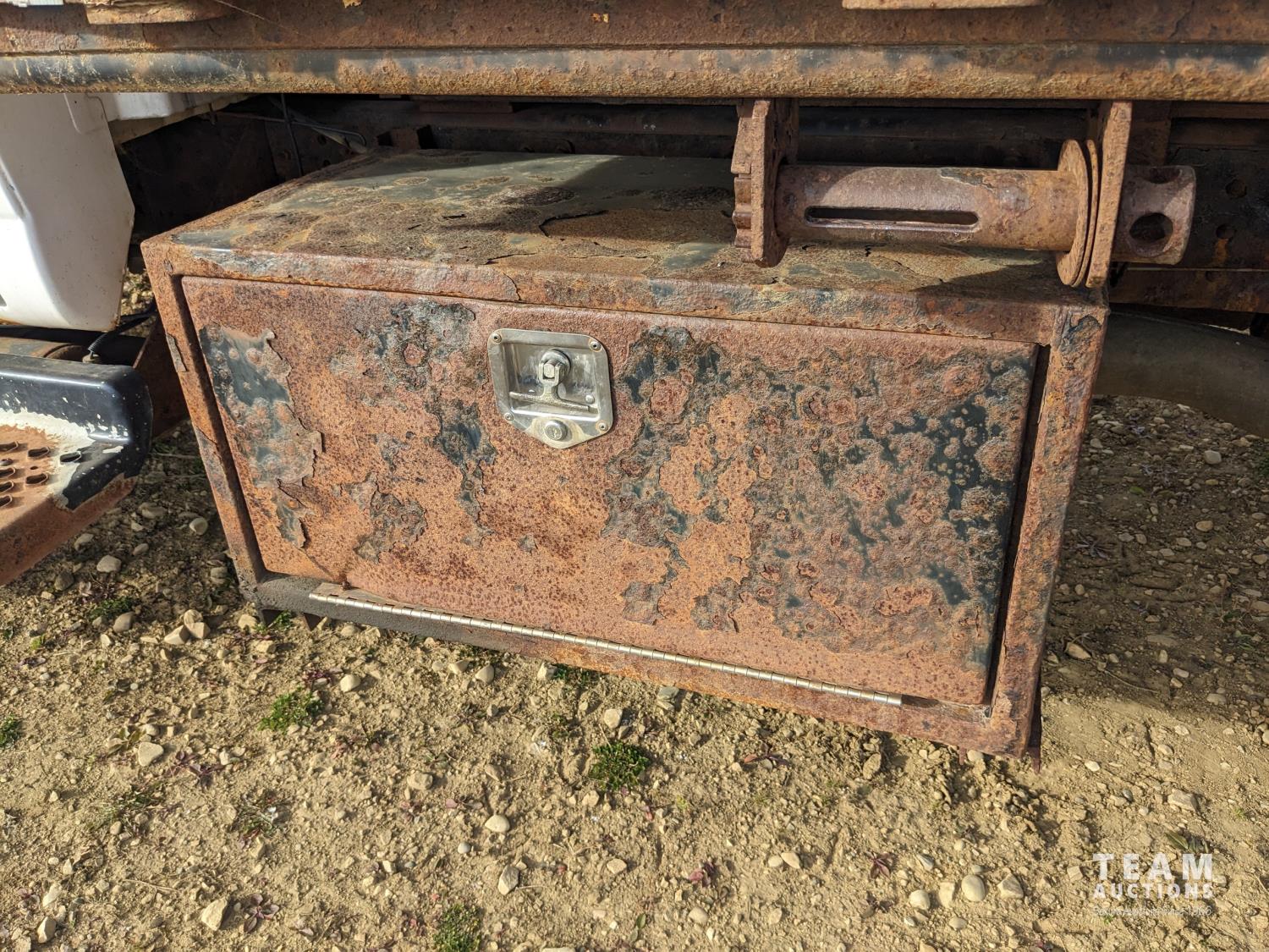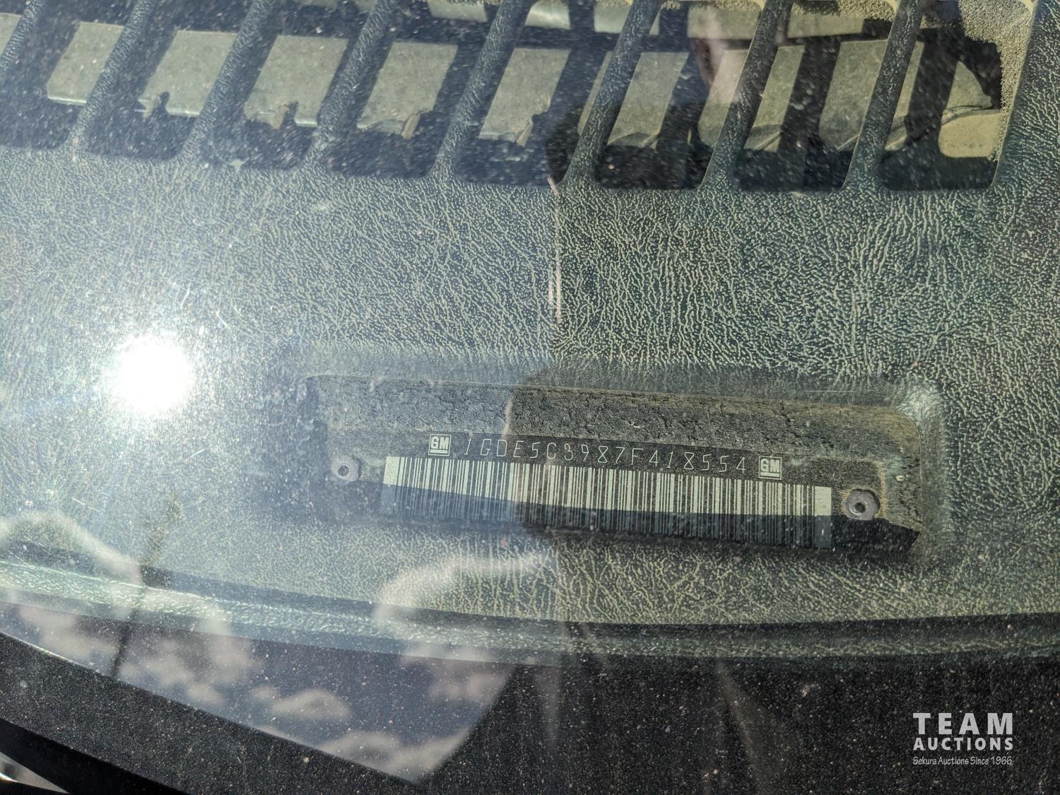 GMC DURAMAX V8 diesel engine, Allison automatic transmission, A/C, radio, 96 inch x 17 ft deck, under mount storage box, spring suspension, aluminum outer wheels, 24.5/7019.5 tires