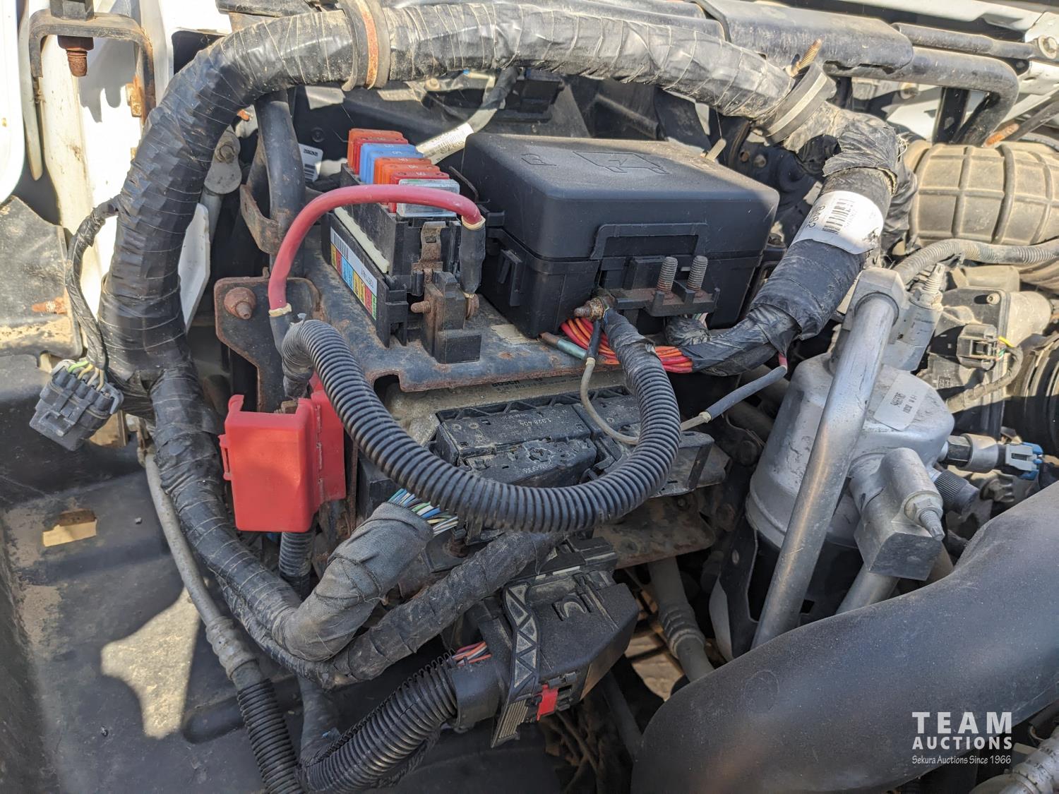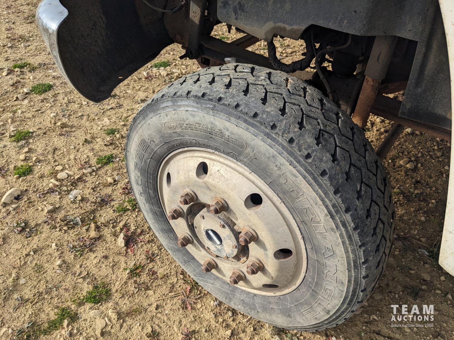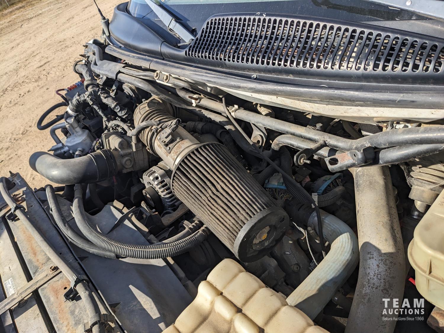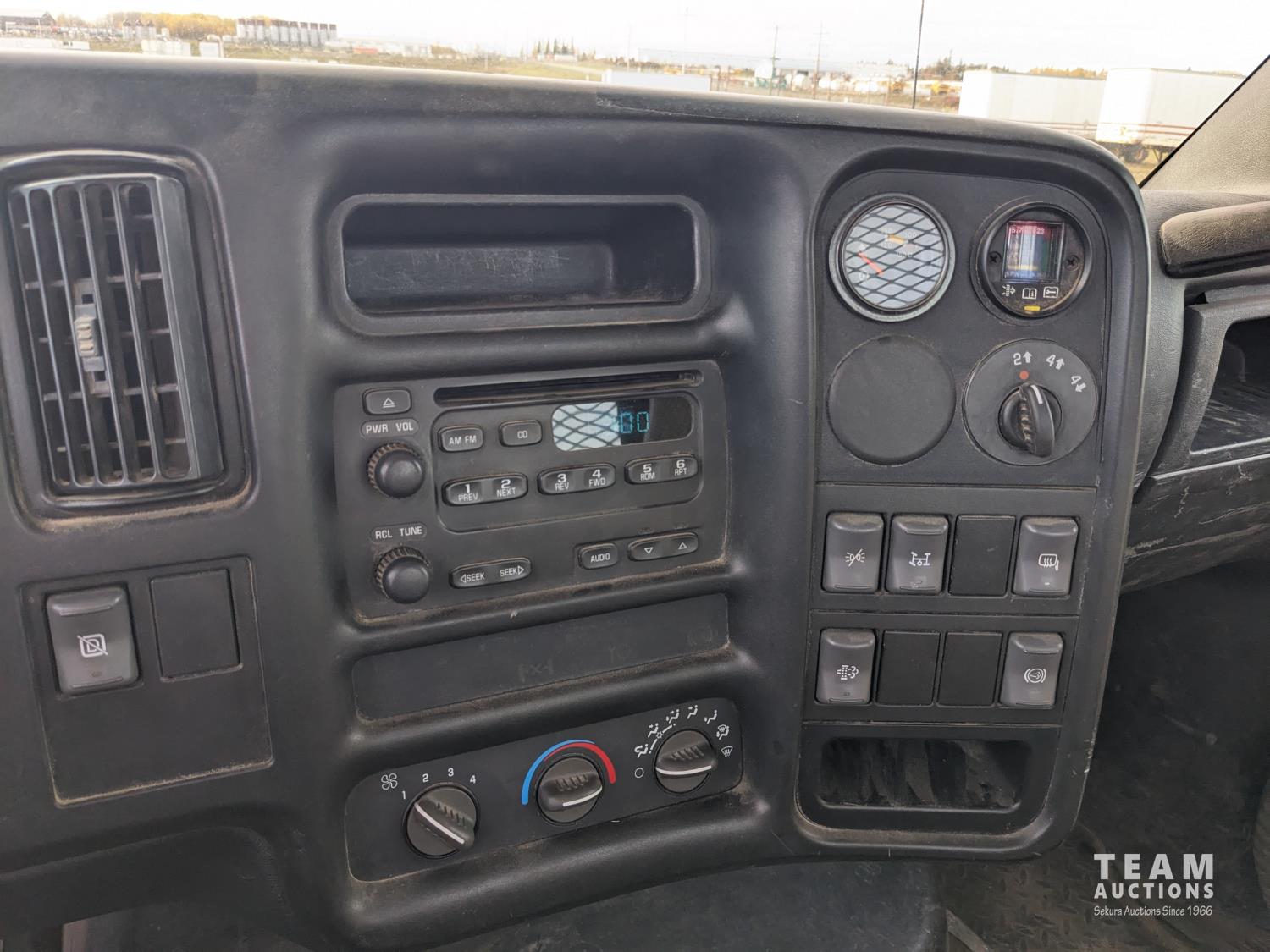 GMC DURAMAX V8 diesel engine, Allison automatic transmission, A/C, radio, 96 inch x 17 ft deck, under mount storage box, spring suspension, aluminum outer wheels, 24.5/7019.5 tires