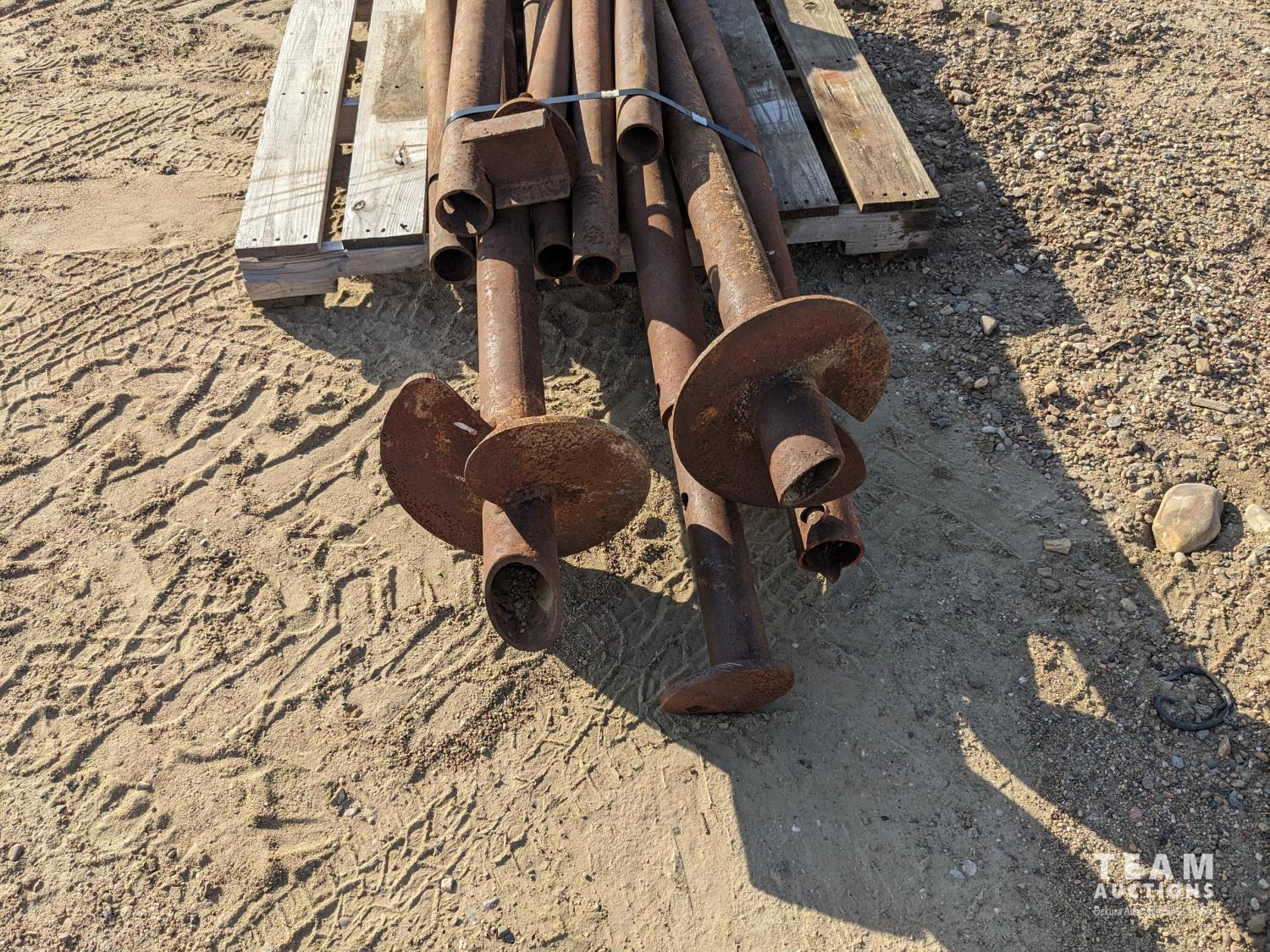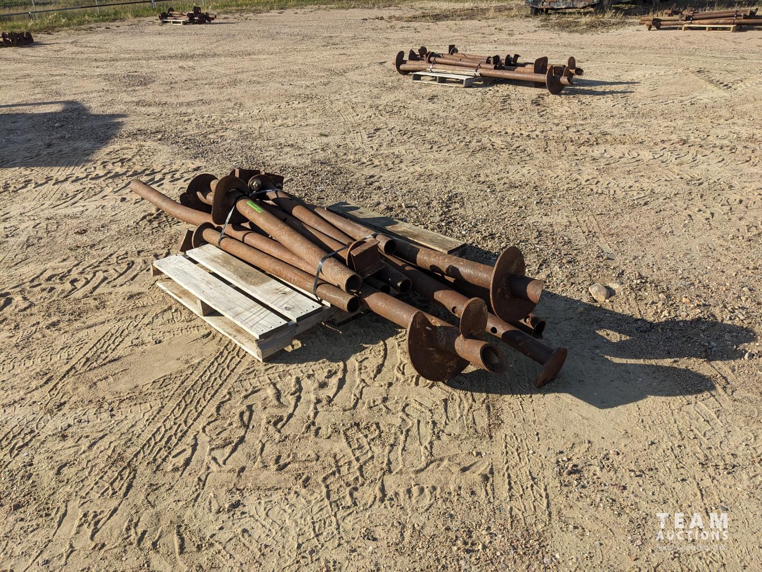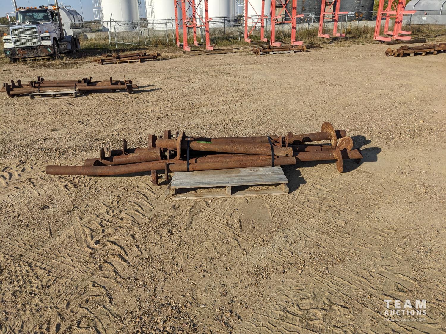106 (5) 12 Inch Screw Piles with 3.5 Inch Center Pipe 10± Ft Long, (5) 48 Inch Pile Insert Beam Stand