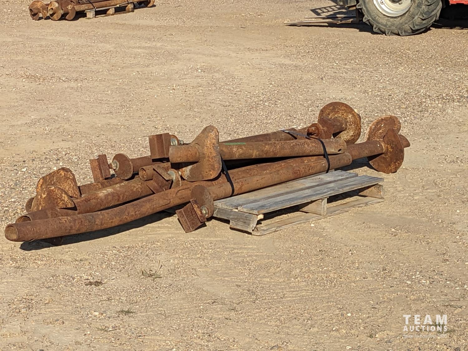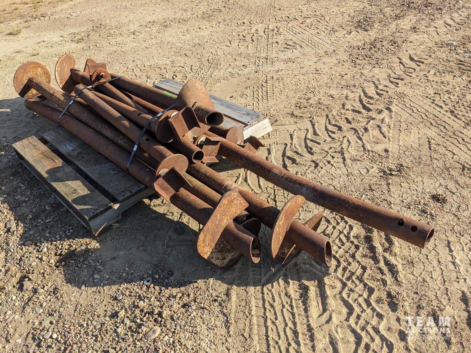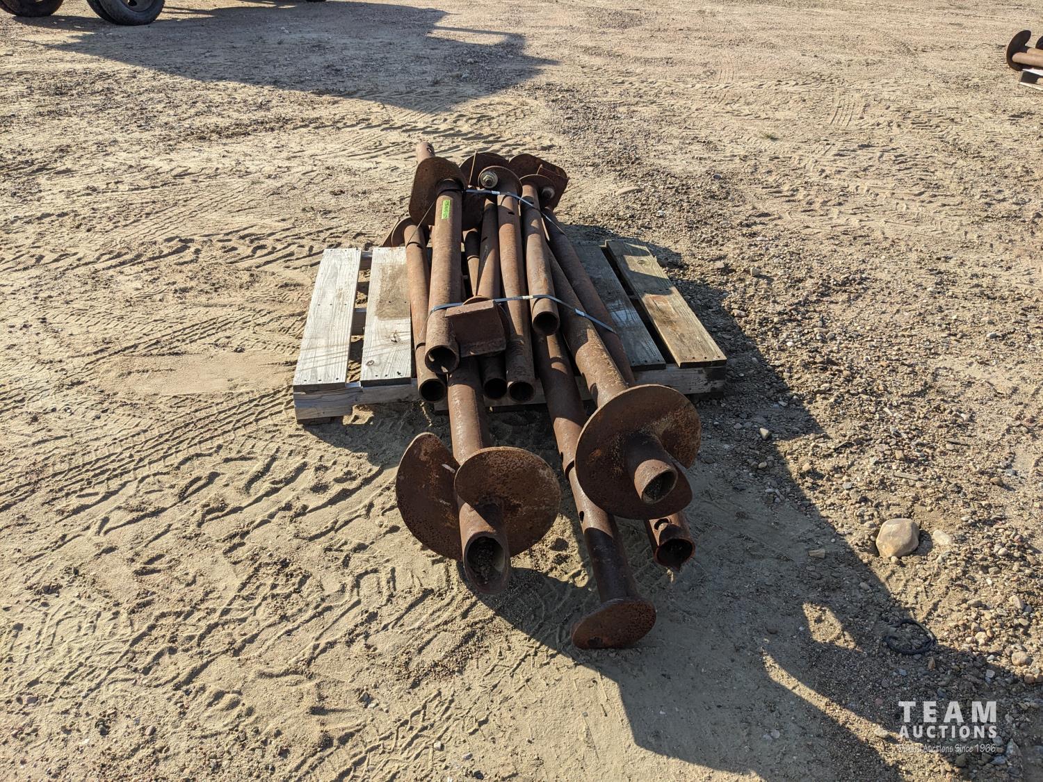106 (5) 12 Inch Screw Piles with 3.5 Inch Center Pipe 10± Ft Long, (5) 48 Inch Pile Insert Beam Stand