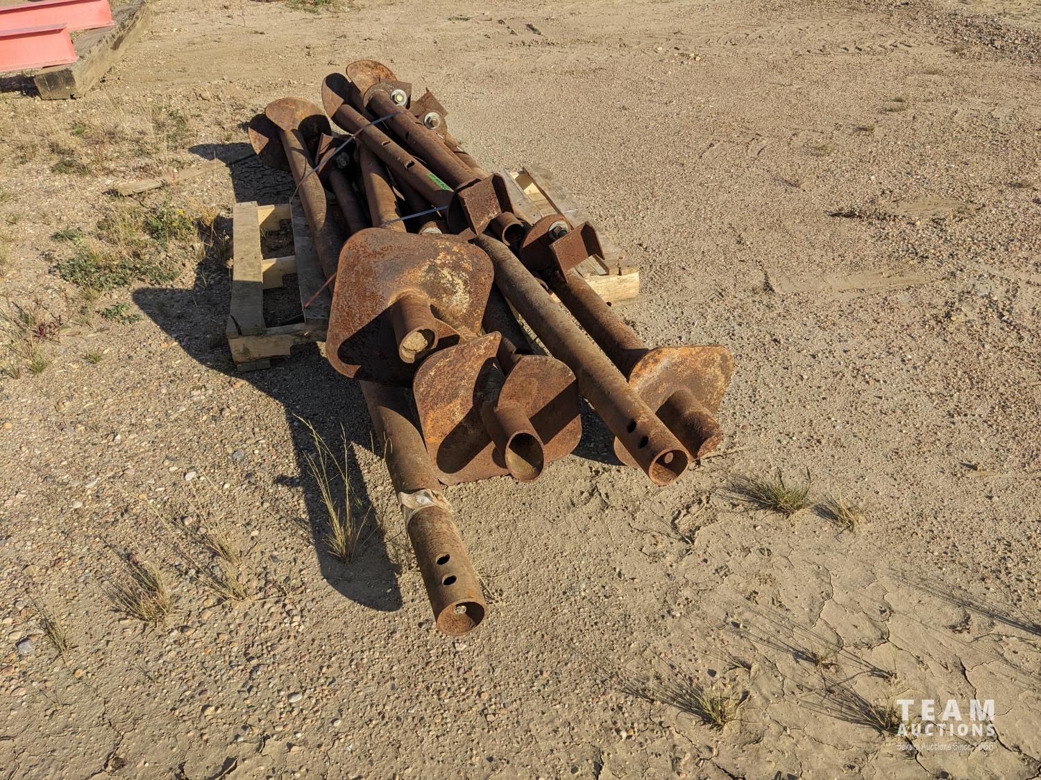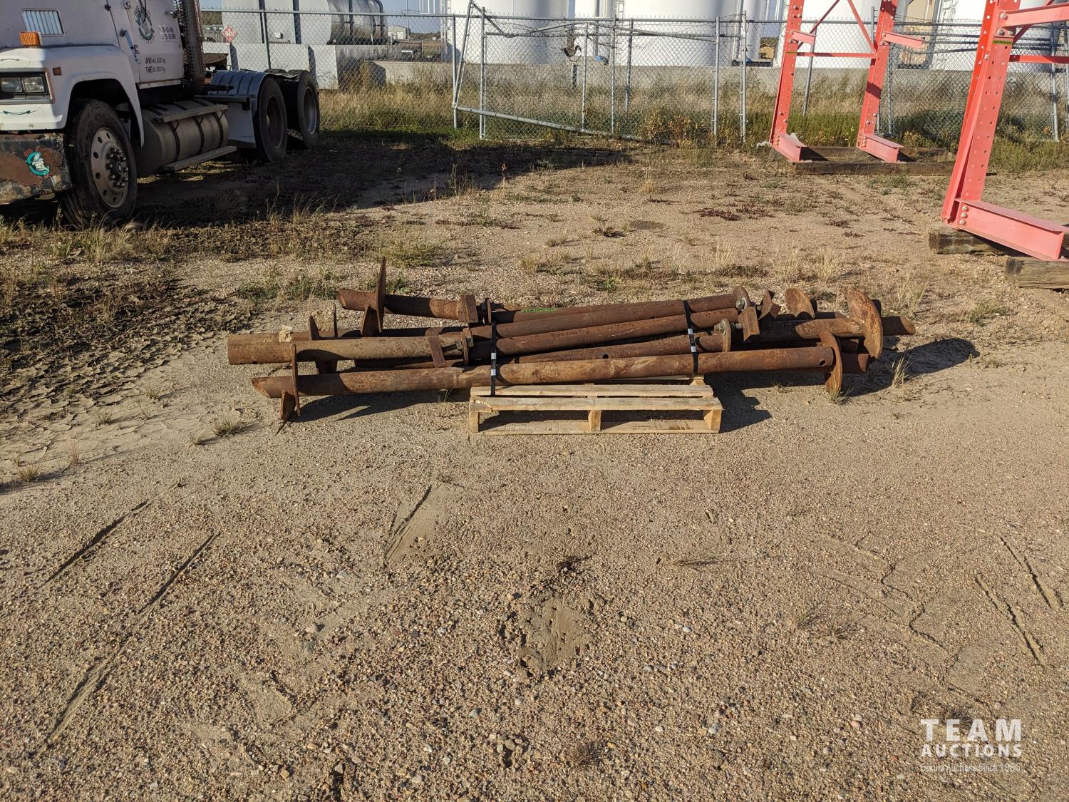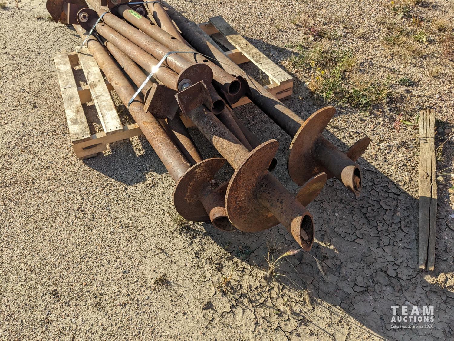 35 (6) 12 Inch Screw Piles with 3.5 Inch Center Pipe 10± Ft Long, (6) 48 Inch Pile Insert Beam Stand