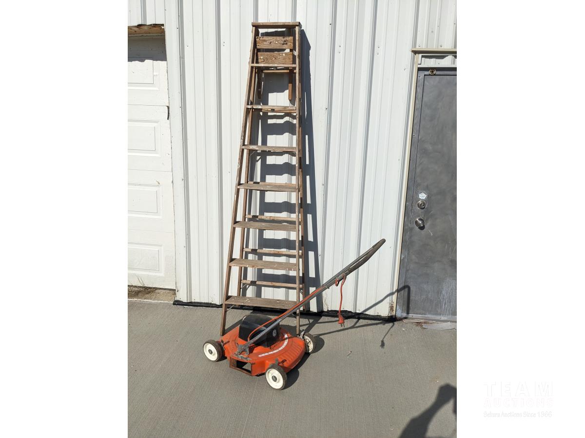 71 8 Ft Wooden Step Ladder, GE 110 Volt Electric Lawnmower