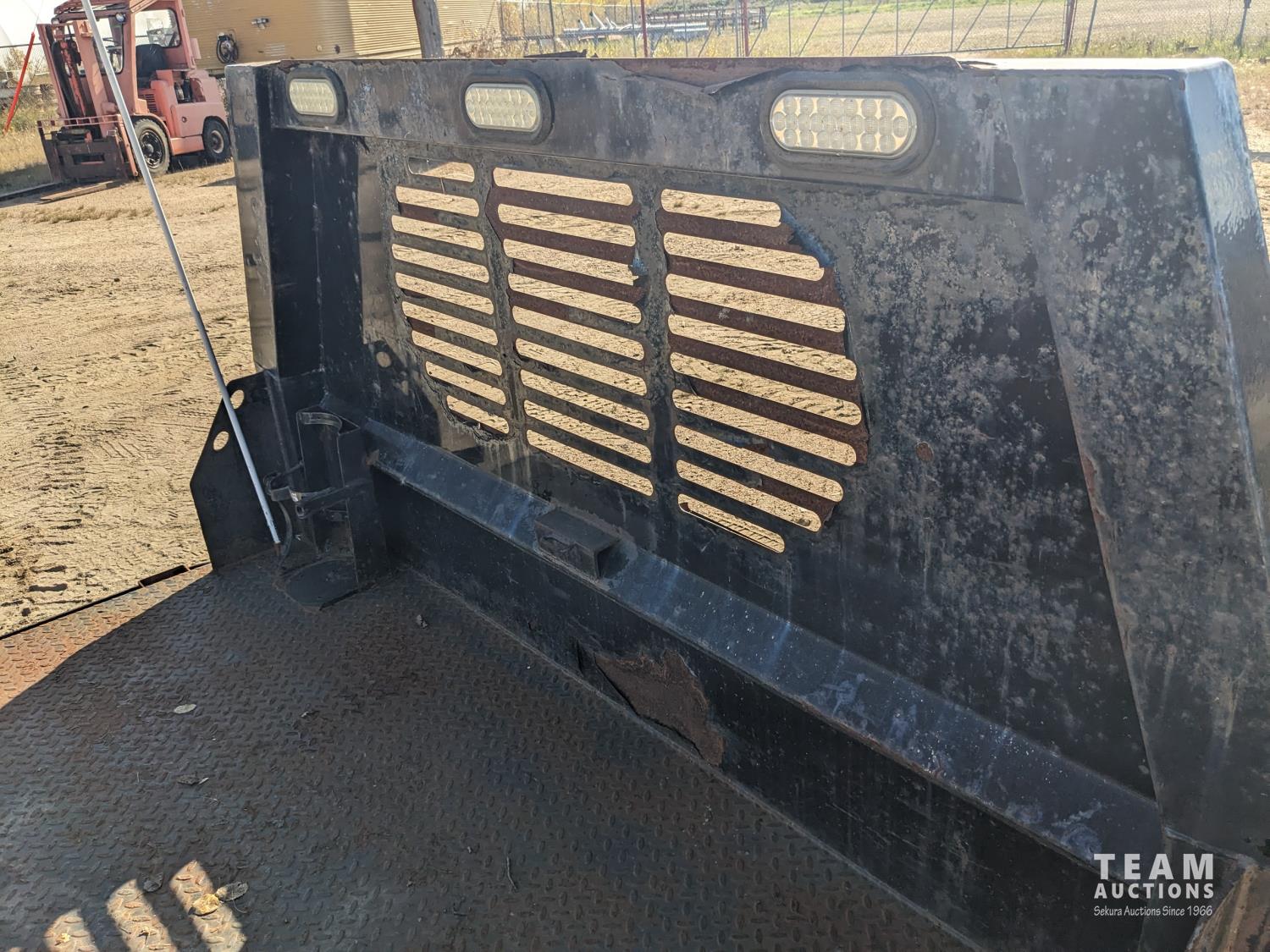 84 inch wide, headache rack with work lights, rub rail, stake pockets, (2) under mount storage boxes