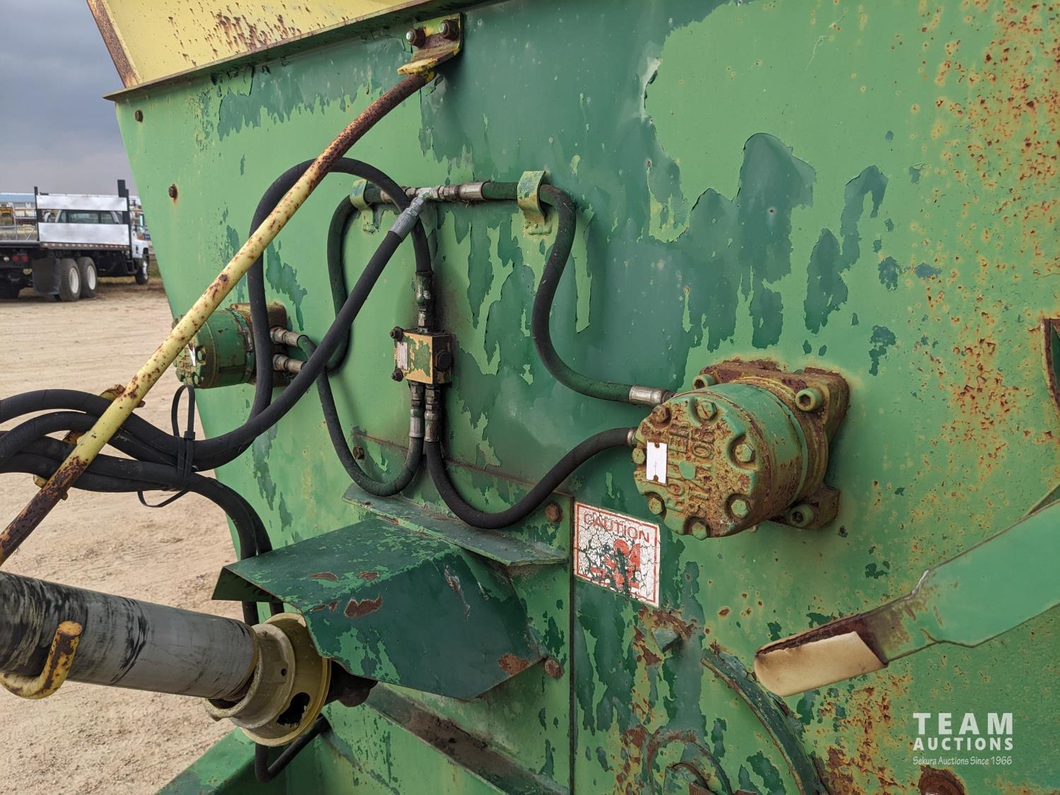 1000 PTO, left hand discharge, rear bale loader, 11L-15 tires