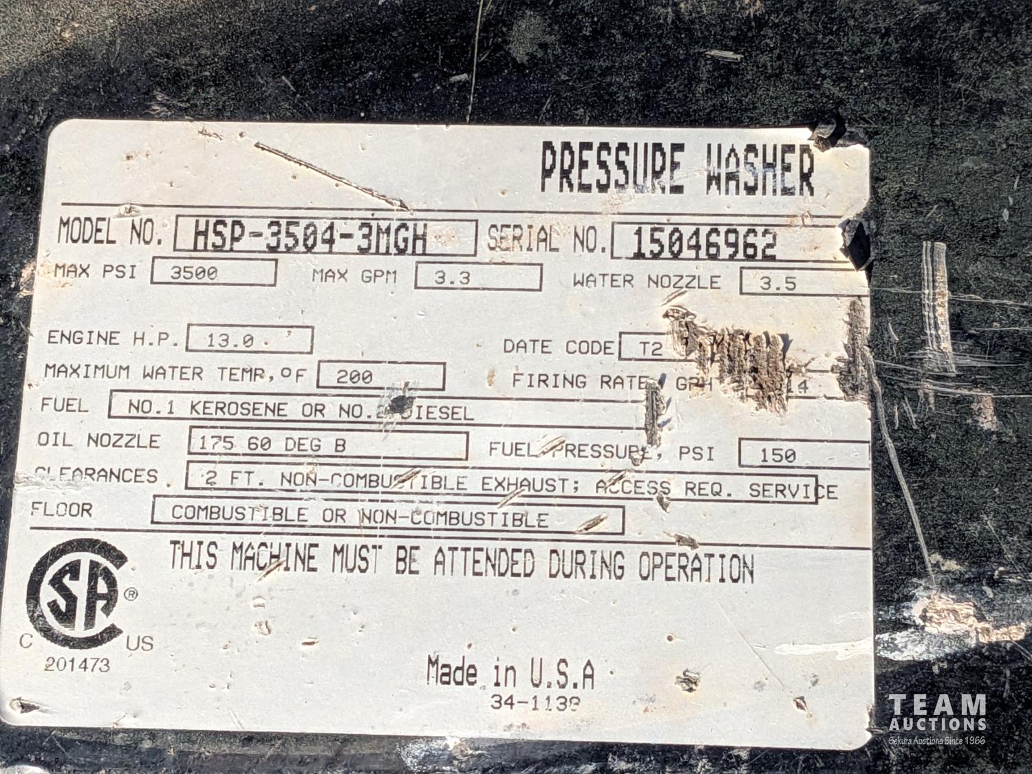 73 M-T-M Corporation HSP-3504-3MGH Diesel Hot Water Gas Pressure Washer