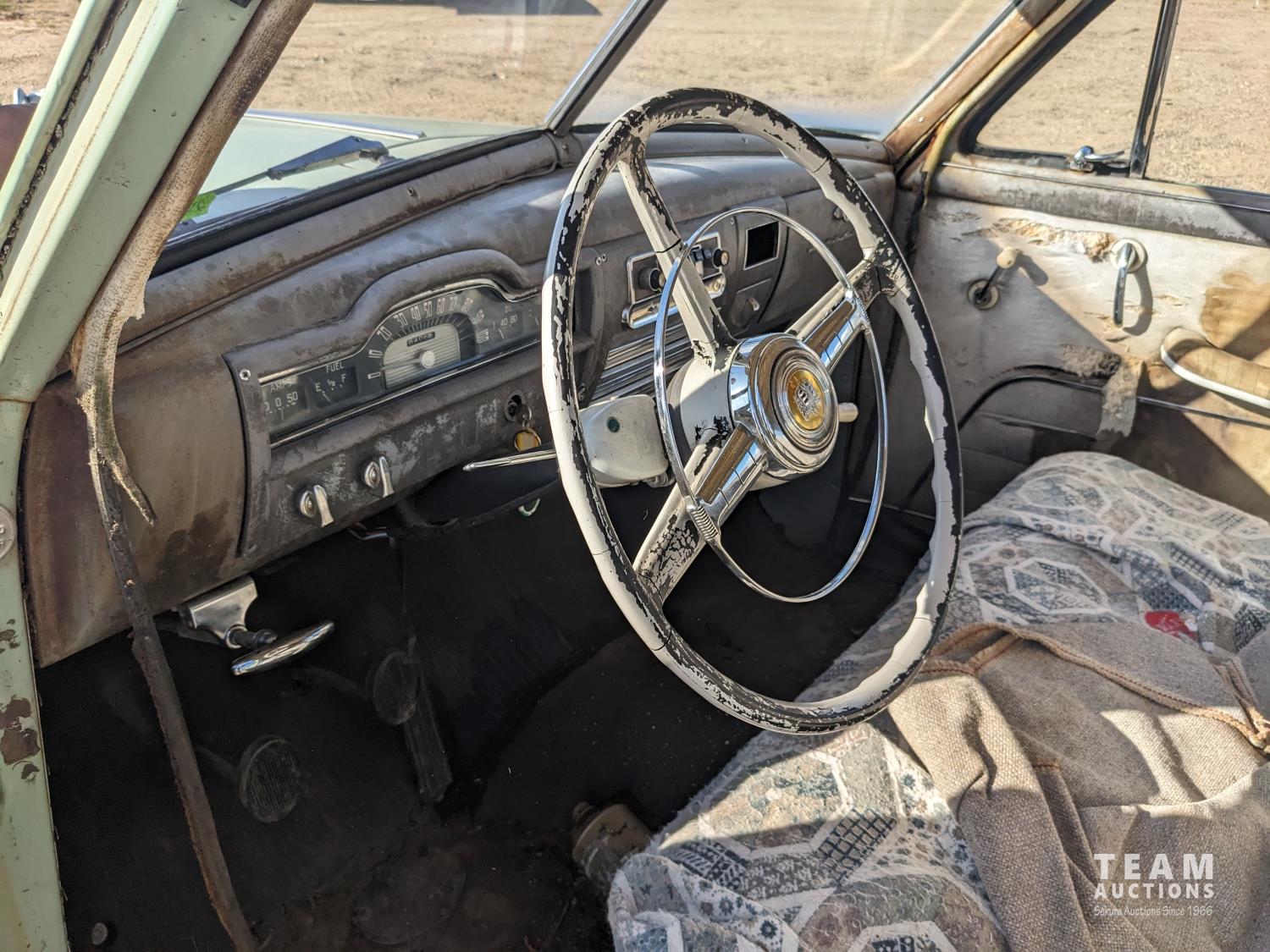 We are not sure of year but around 1950. Looks complete and body in pretty good condition. Has one flat tire. Great project car.