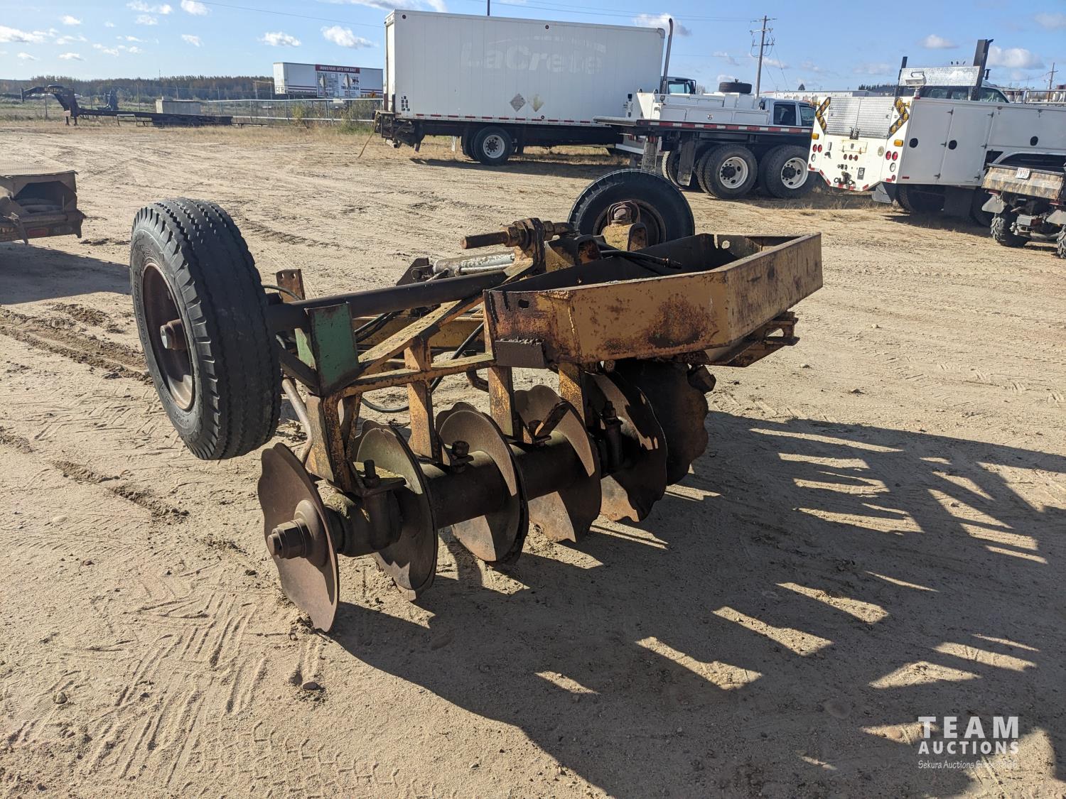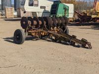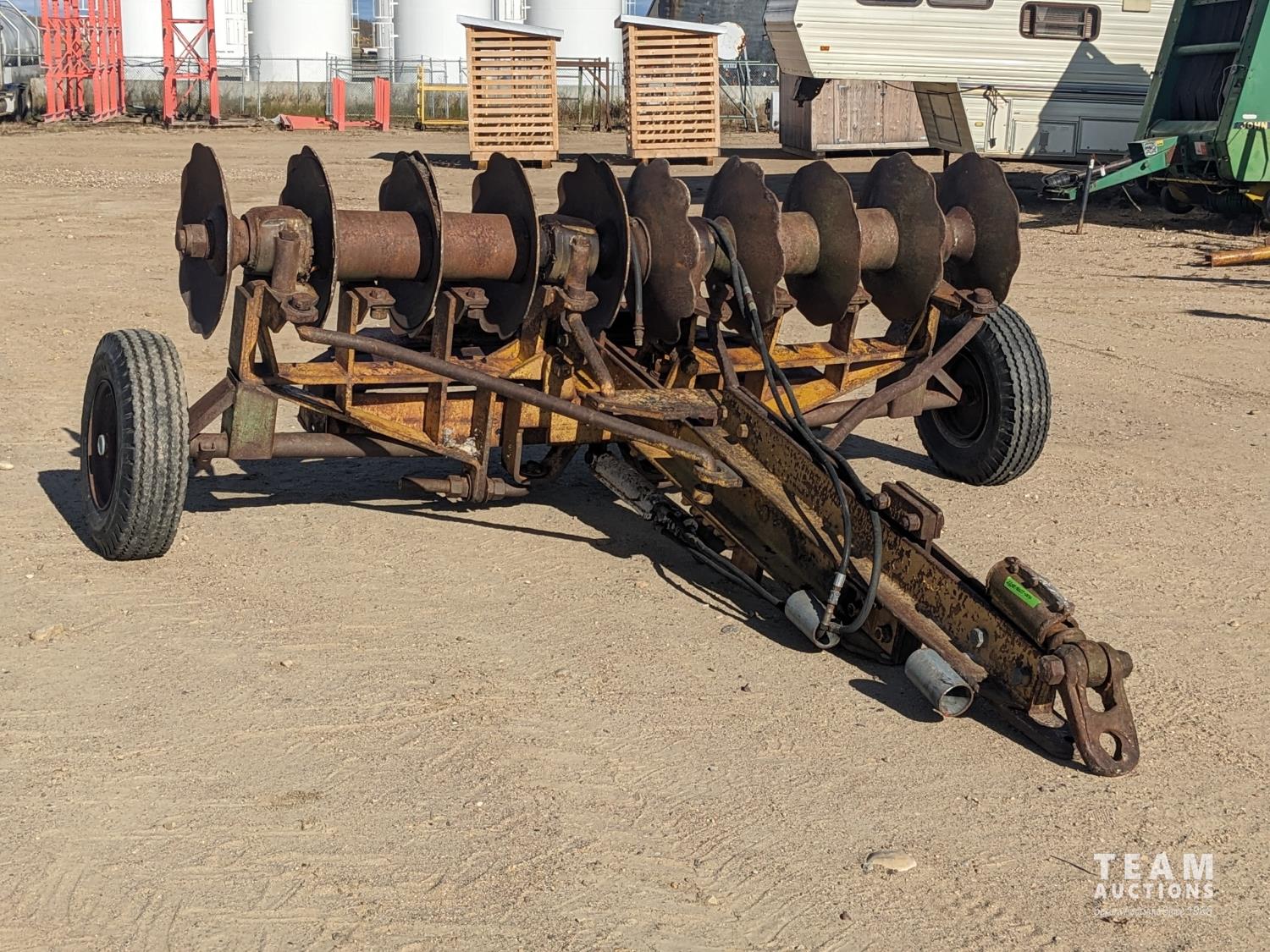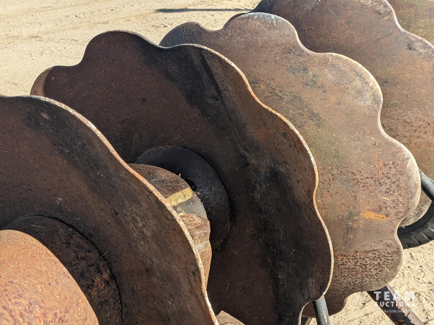 12 inch spacing, 23 inch disc blades, hydraulic lift cylinder, flip over transport, 8-14.5 tires