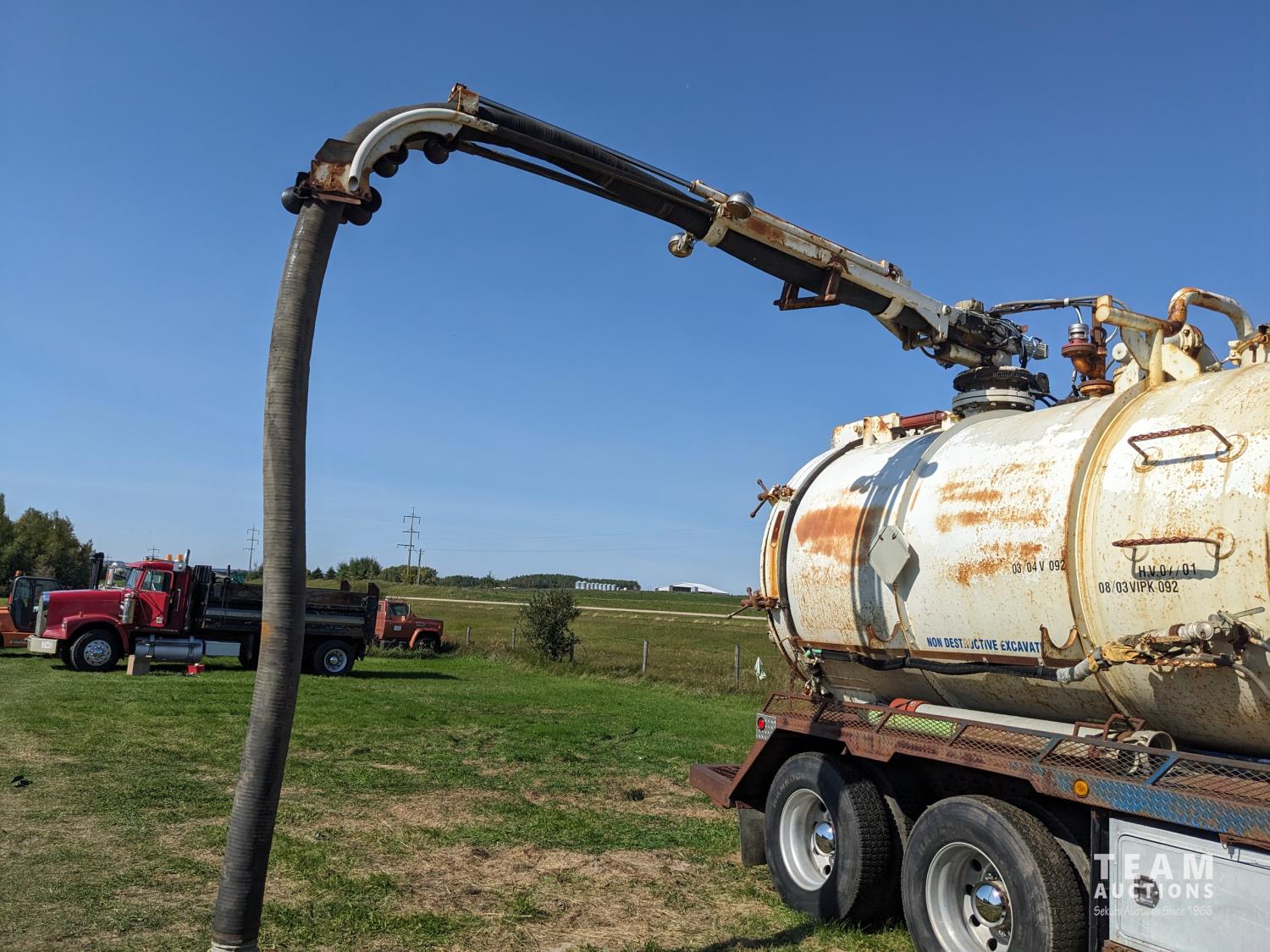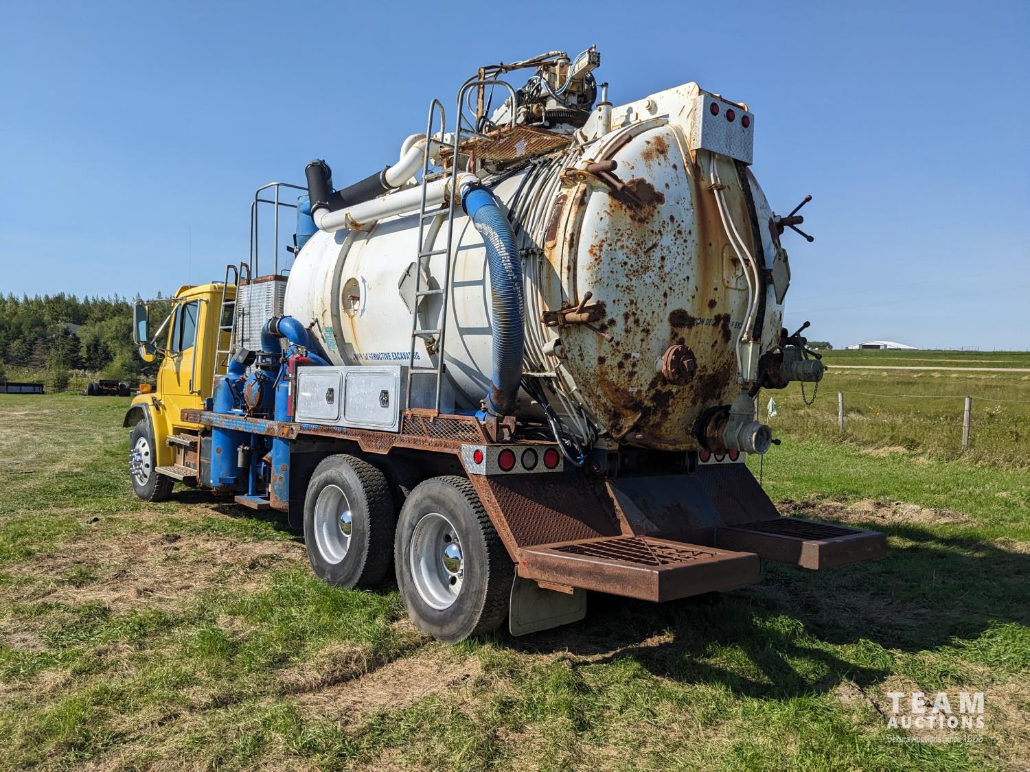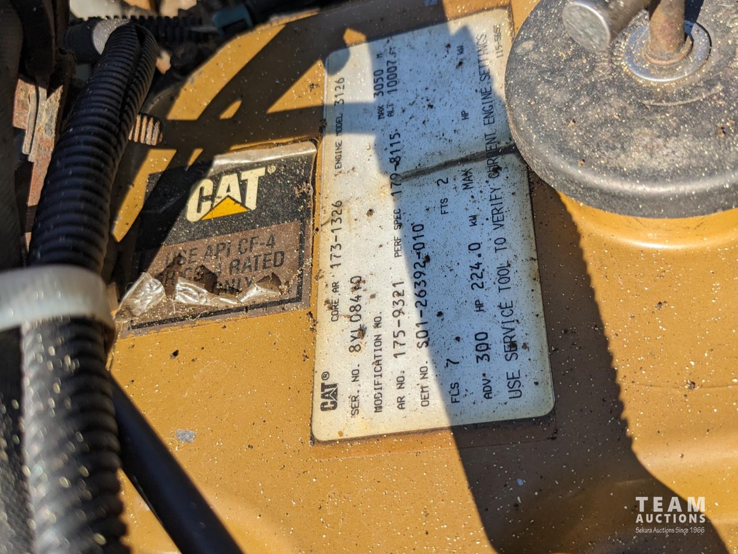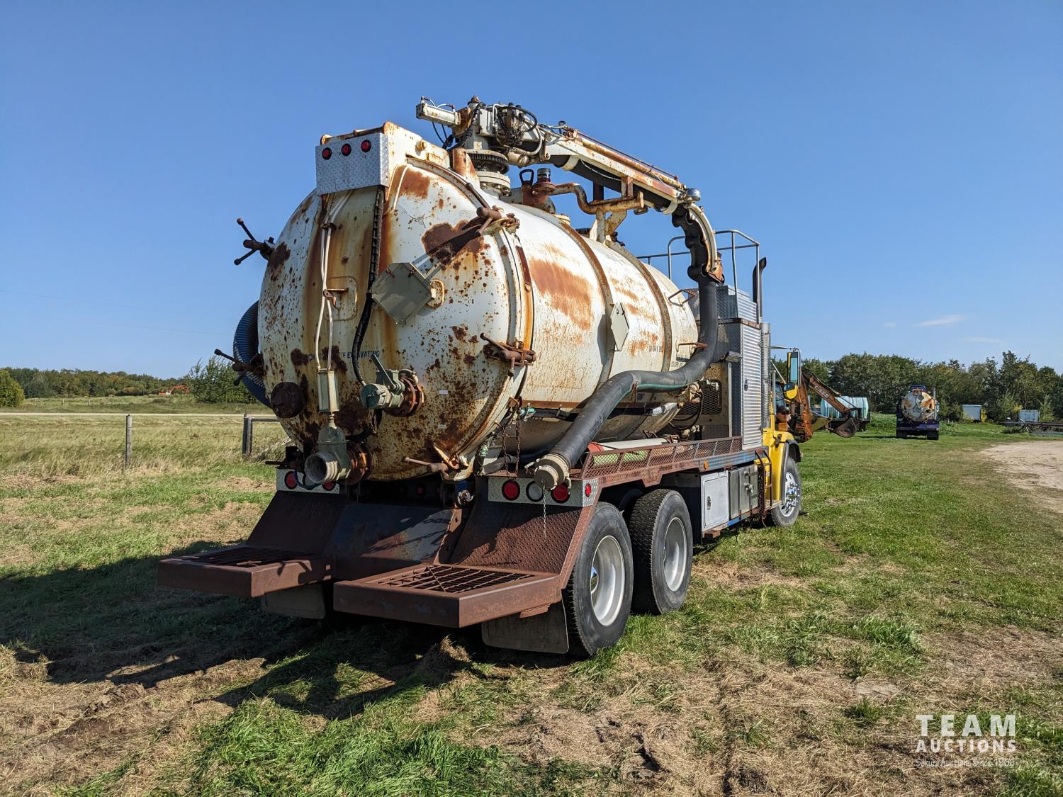 Caterpillar 3126 7.2 6 cylinder 300 HP diesel engine, Eaton Fuller 18 speed manual transmission, TC350 PTO pump, Westech 12.5 cube 2 compartment tank, 10 cube debris, 2.5 cube water, Cat 650 hot water pump, Hbion 820 blower, hoist, opening end gate, wireless remote Cusco 6 inch boom, 420,000 boiler, Chalmers rubber block suspension, 12,000 lb front axle, 40,000 lb rear axles, 3 way diff locks, aluminum outer wheels, 11R22.5 tires