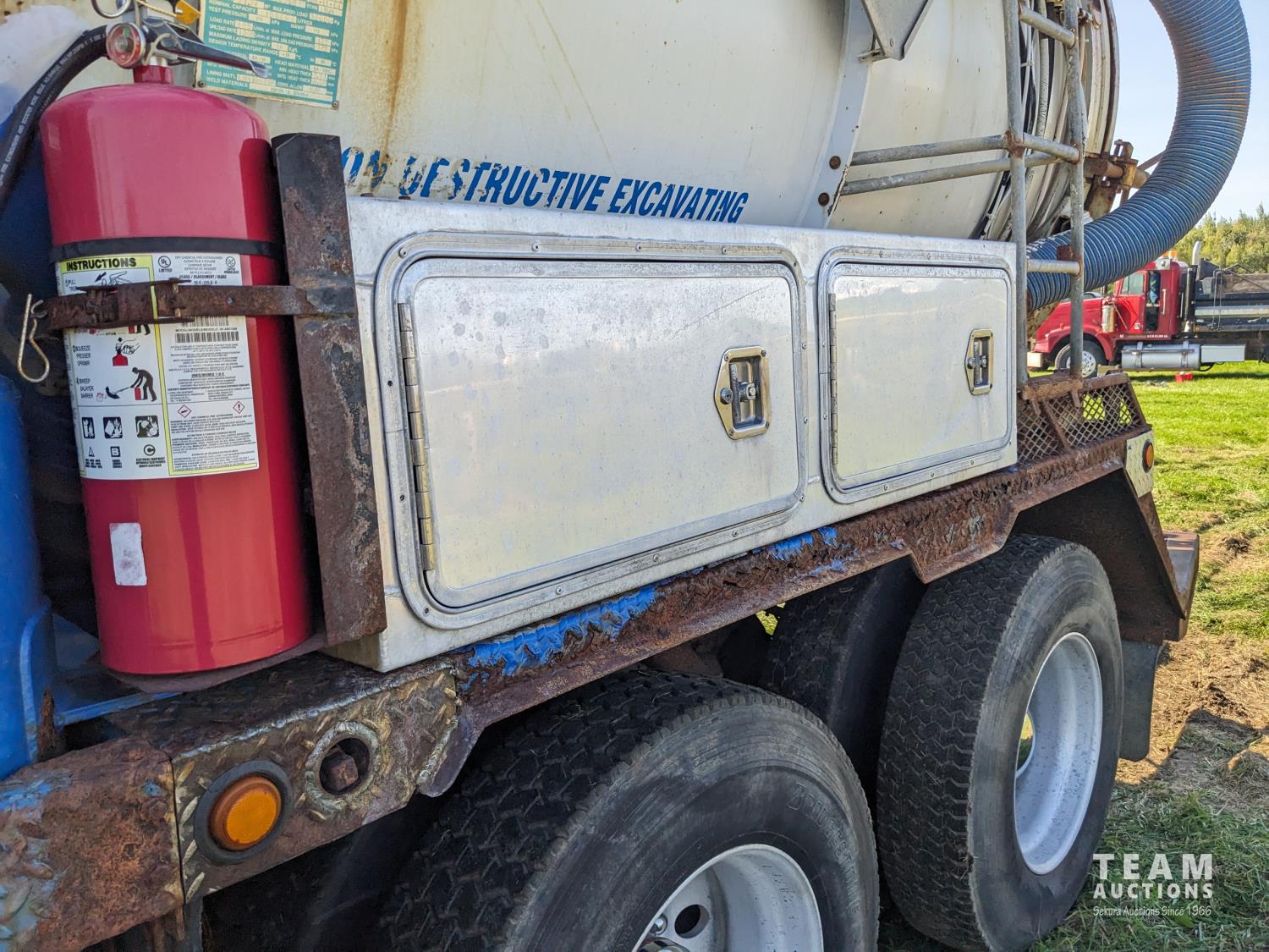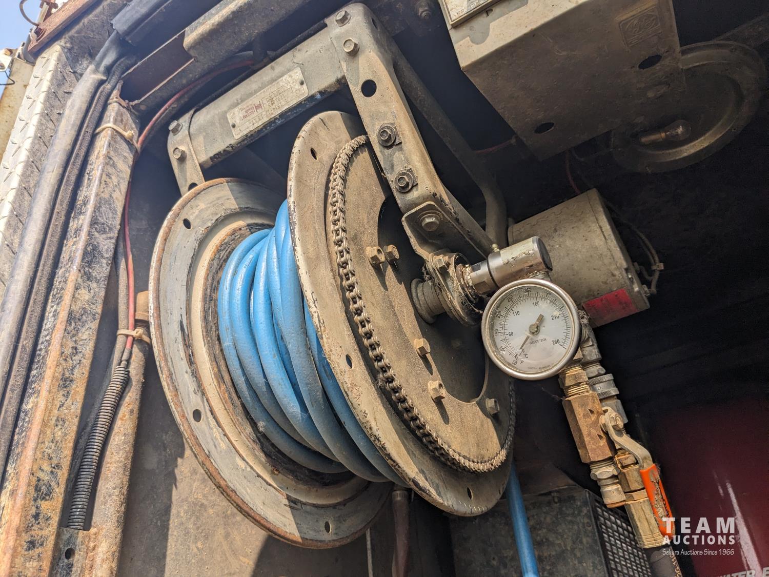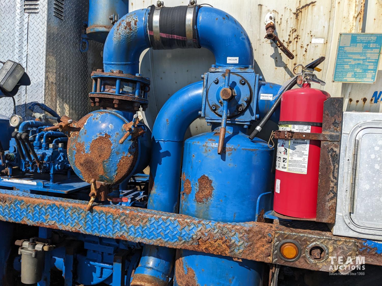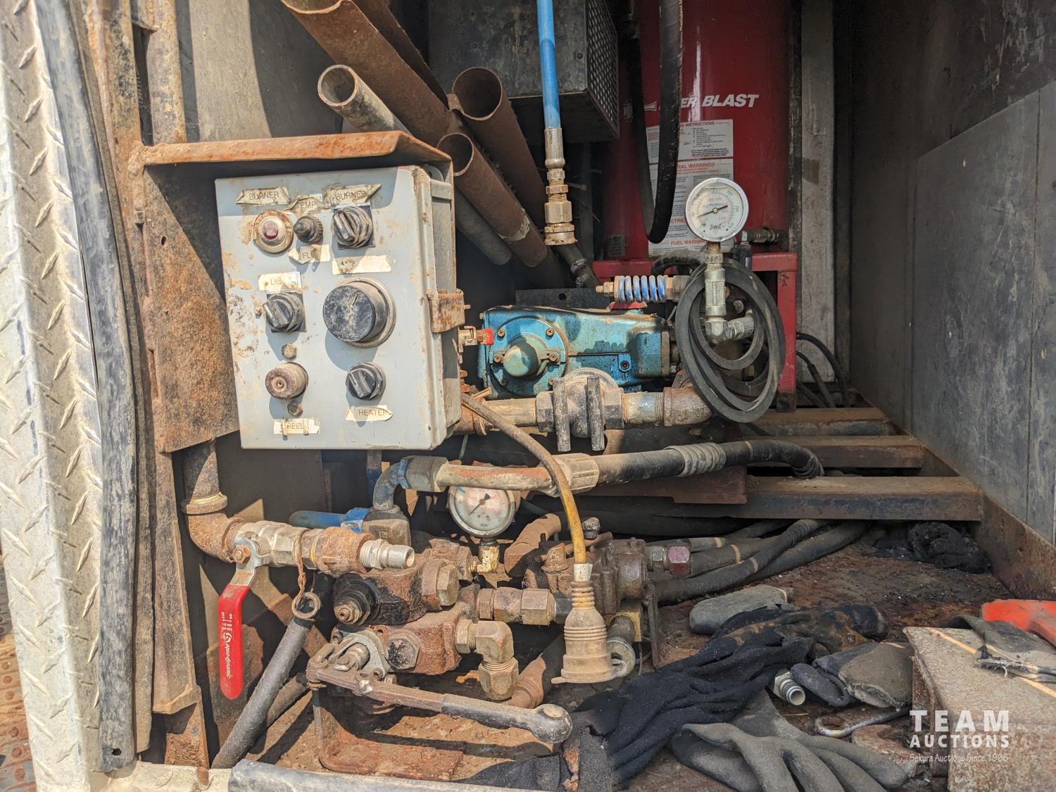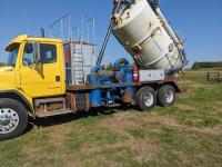 Caterpillar 3126 7.2 6 cylinder 300 HP diesel engine, Eaton Fuller 18 speed manual transmission, TC350 PTO pump, Westech 12.5 cube 2 compartment tank, 10 cube debris, 2.5 cube water, Cat 650 hot water pump, Hbion 820 blower, hoist, opening end gate, wireless remote Cusco 6 inch boom, 420,000 boiler, Chalmers rubber block suspension, 12,000 lb front axle, 40,000 lb rear axles, 3 way diff locks, aluminum outer wheels, 11R22.5 tires