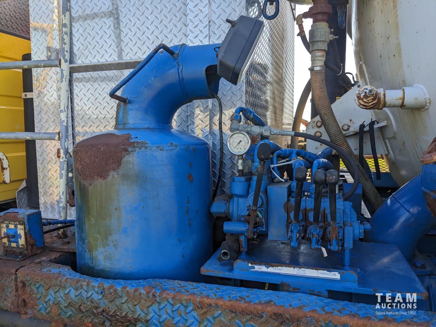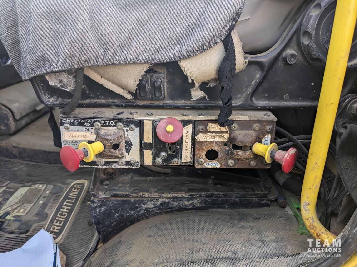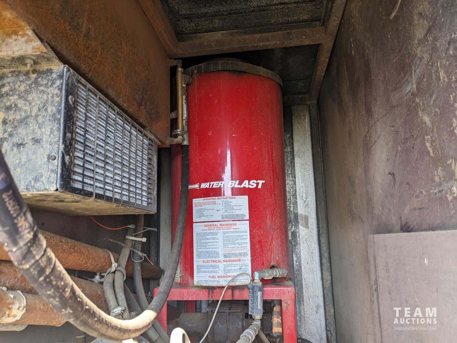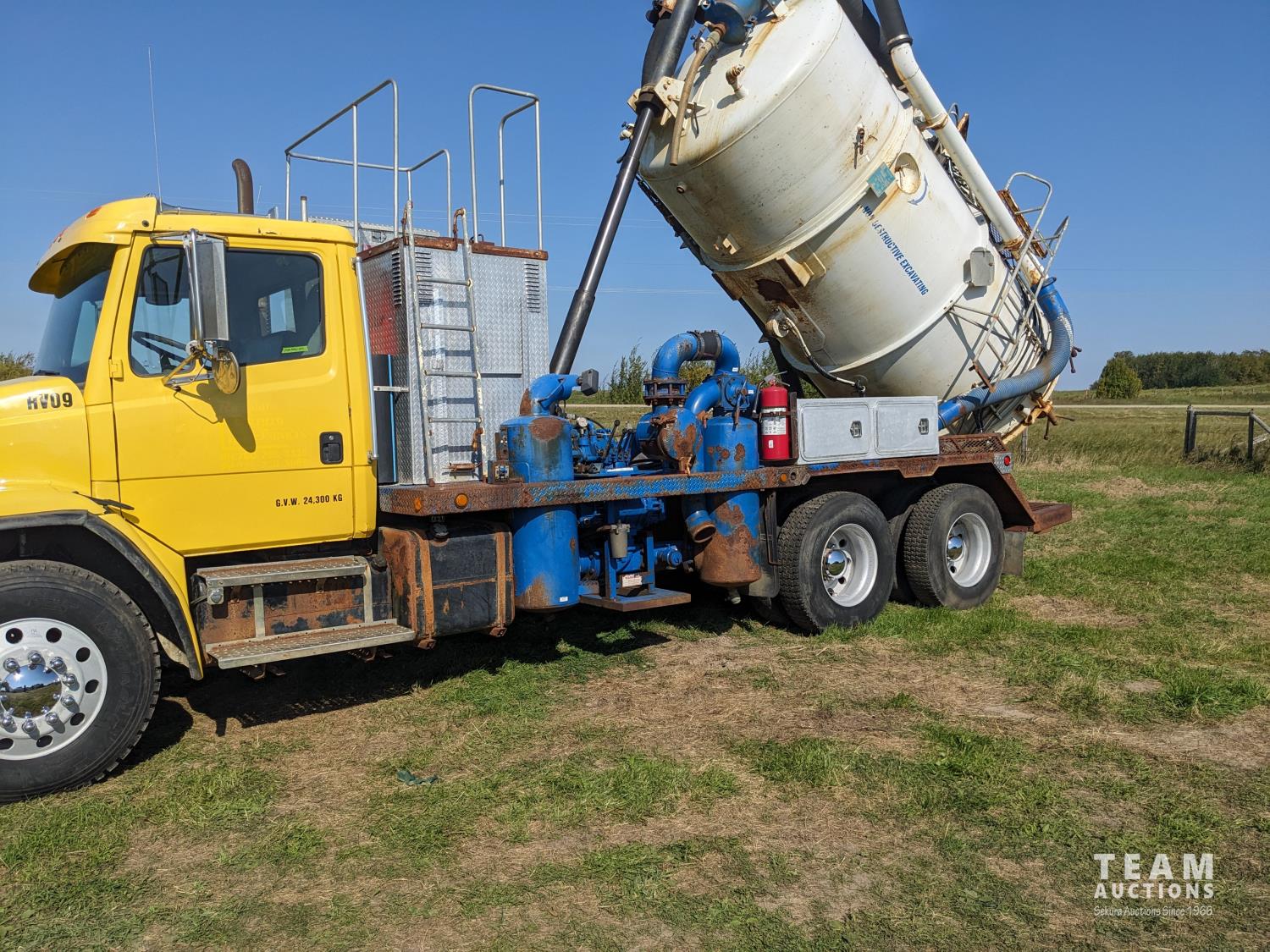 Caterpillar 3126 7.2 6 cylinder 300 HP diesel engine, Eaton Fuller 18 speed manual transmission, TC350 PTO pump, Westech 12.5 cube 2 compartment tank, 10 cube debris, 2.5 cube water, Cat 650 hot water pump, Hbion 820 blower, hoist, opening end gate, wireless remote Cusco 6 inch boom, 420,000 boiler, Chalmers rubber block suspension, 12,000 lb front axle, 40,000 lb rear axles, 3 way diff locks, aluminum outer wheels, 11R22.5 tires