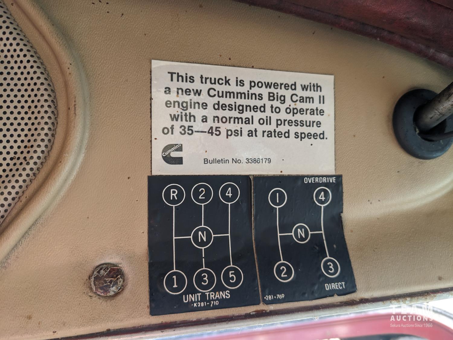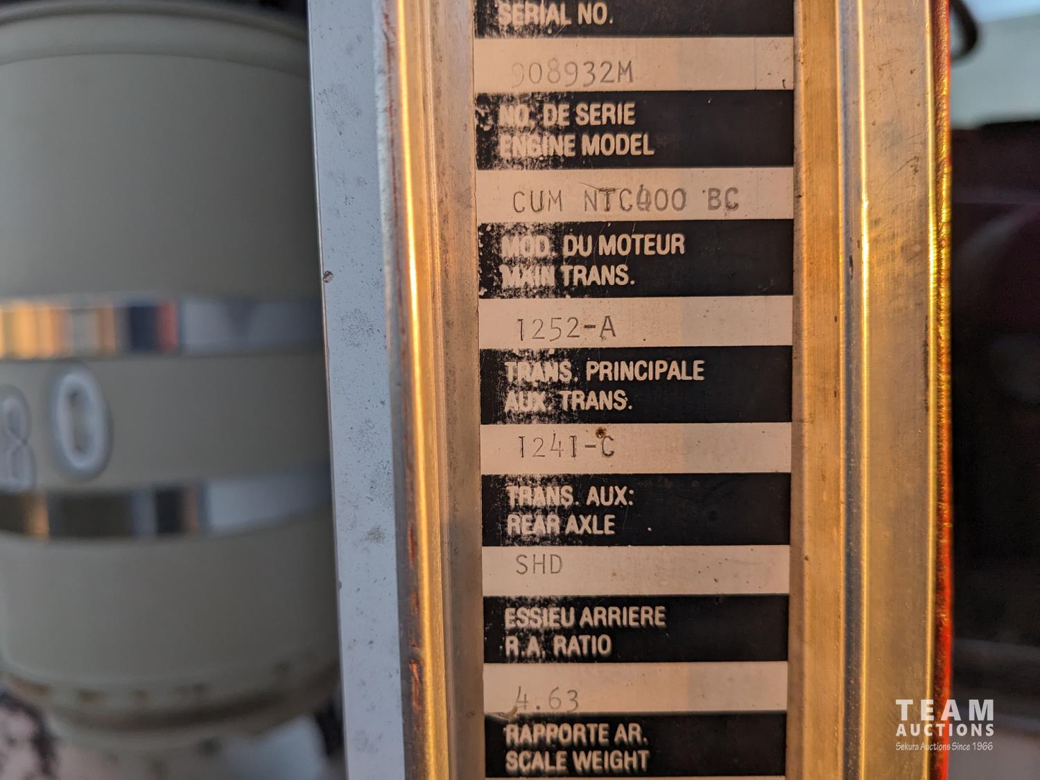 Cummins NTC400 6 cylinder 400 HP diesel engine, 5&4 20 speed manual transmission, A/C, spring suspension, diff lock, 260 inch WB, 12R24.5 front tires, 11R24.5 rear tires