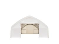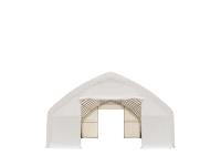 Straight wall, peak ceiling, 11 oz PE cover, drive thorugh doors