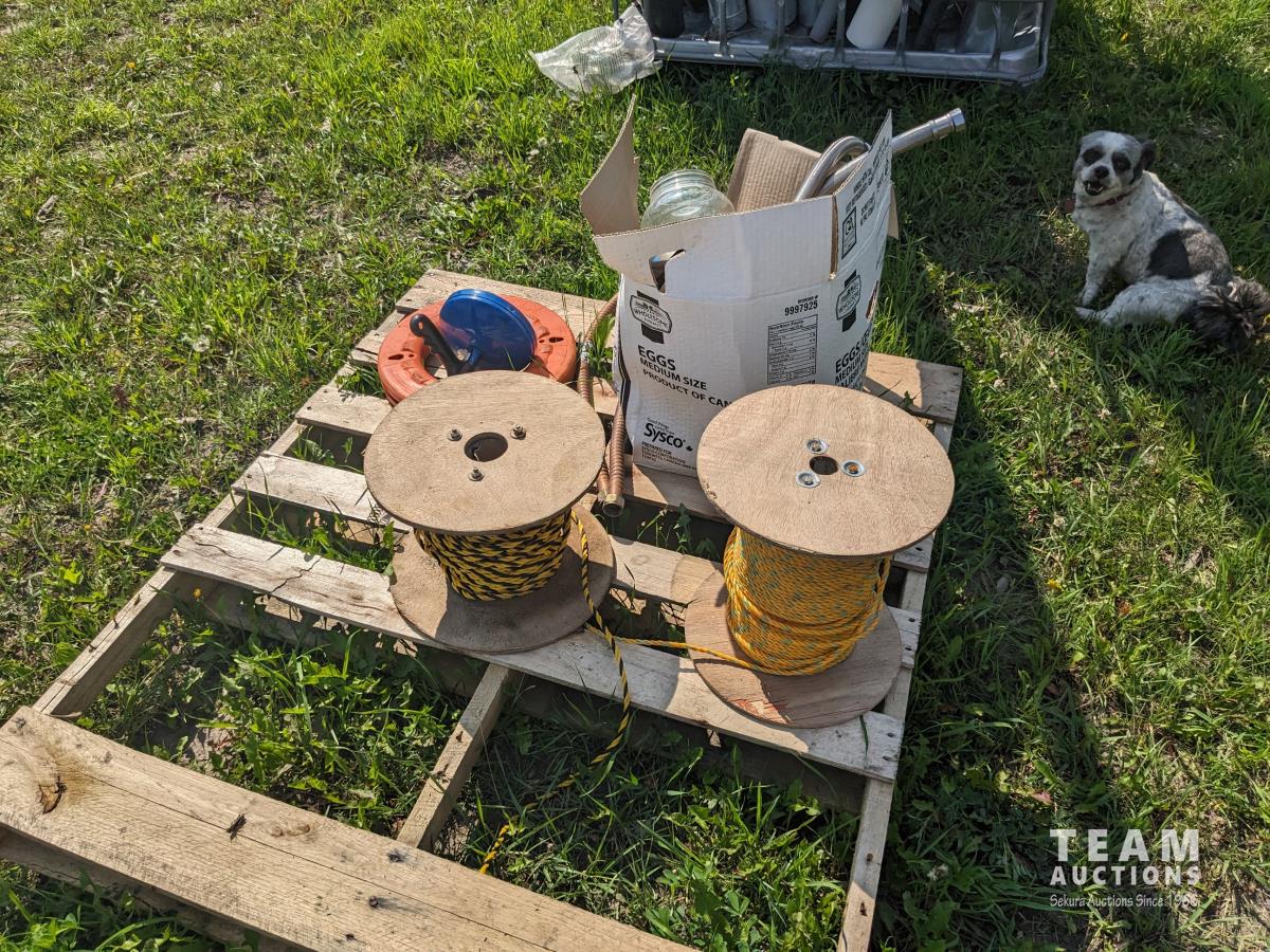54 (2) Rolls of Rope, Misc Fittings, Fish Tape, Small Sewer Snake