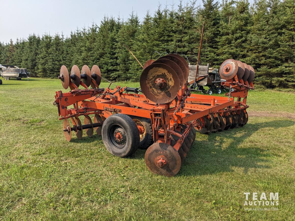 18.5 inch spacing, 17 inch front discs, 19 inch rear discs, scrapers, hydraulic lift cylinder, 15 inch duals