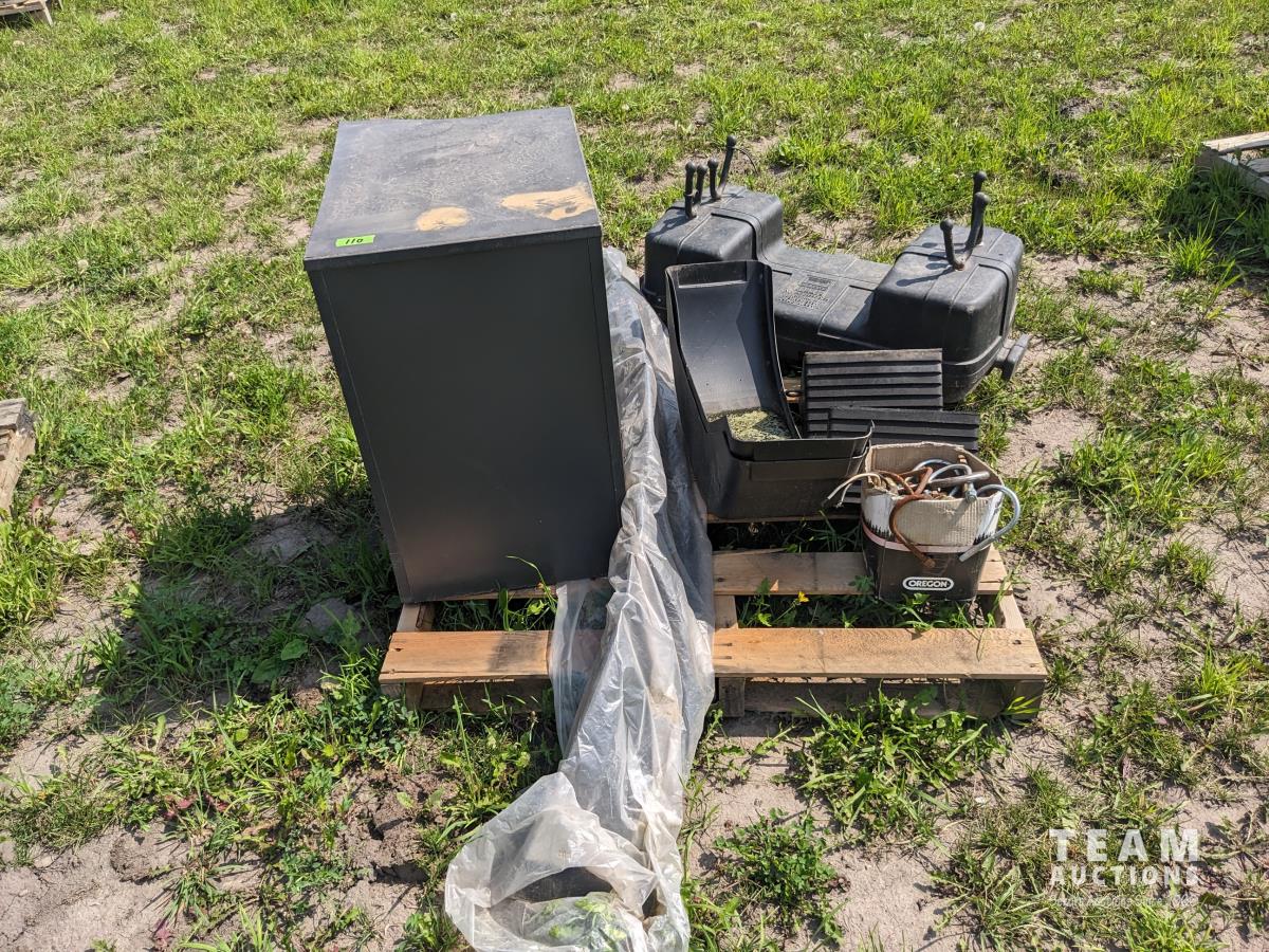 113 Quad Box, (2) Trailer Fenders, U Bolts and Brass Fittings, Three Drawer Cabinet