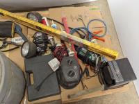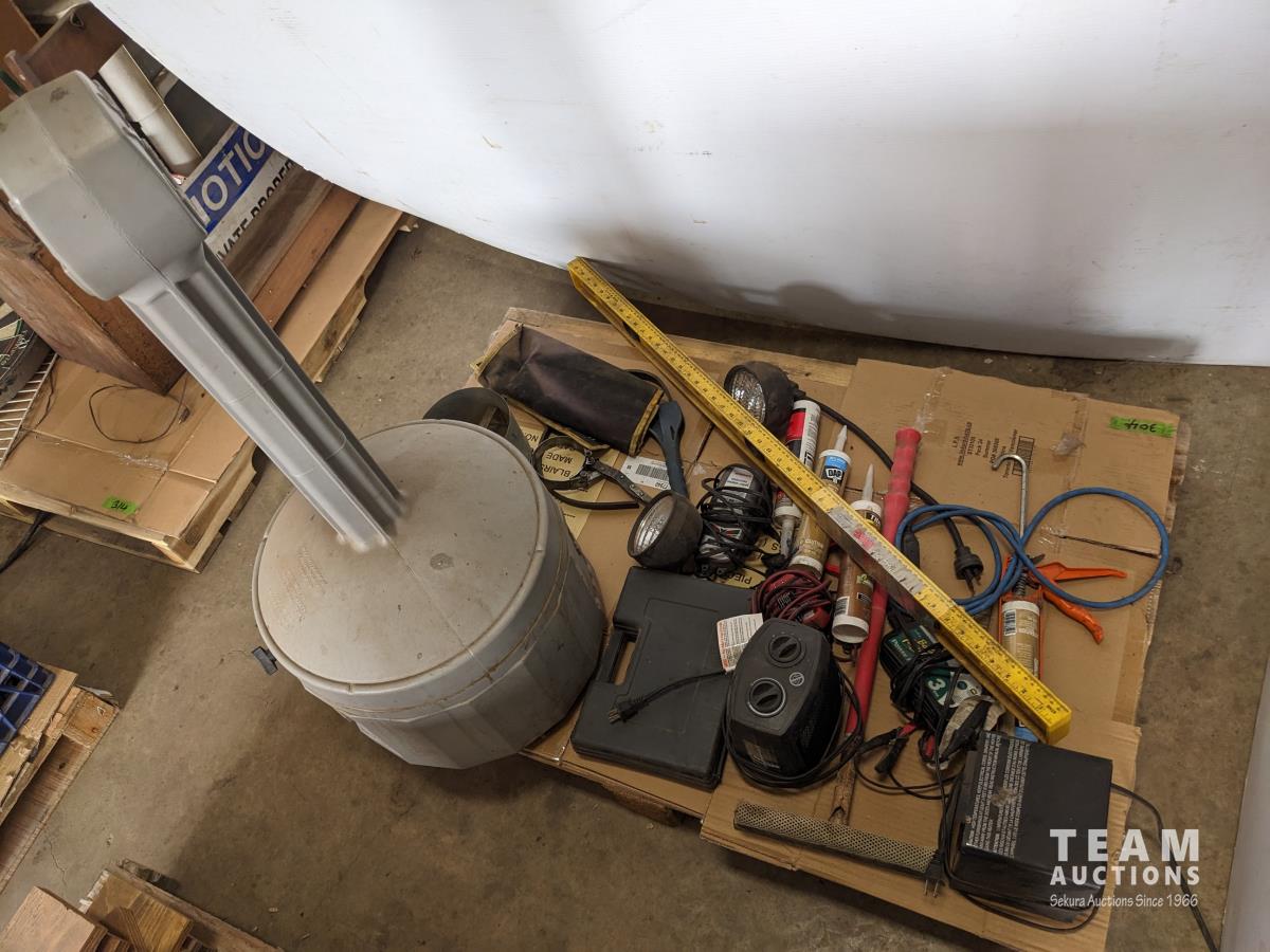 48 inch level, (2) small ceramic heaters, upright cigarette bin, Weller soldering gun