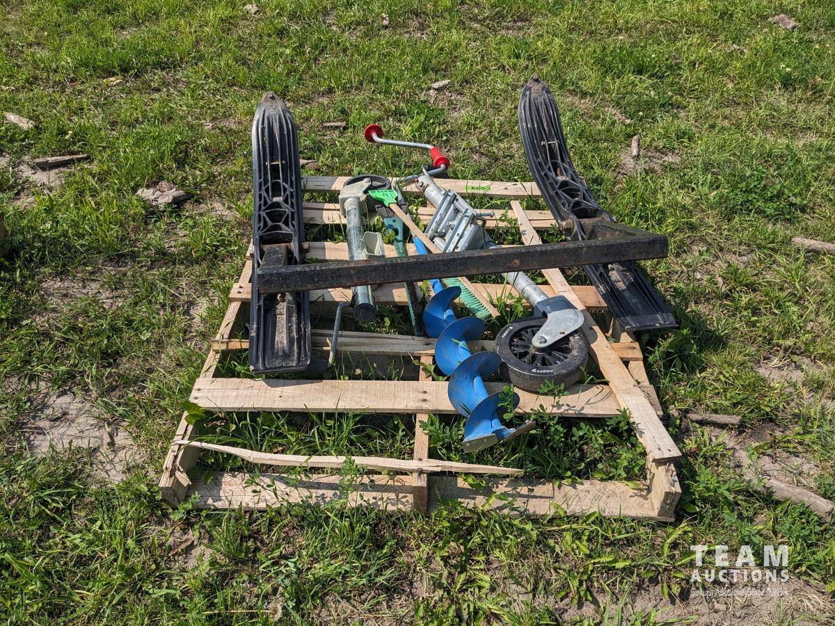 82 Ski Frame For Snowmobile Sleigh, (2) Trailer Jacks, 6 Inch Ice Auger