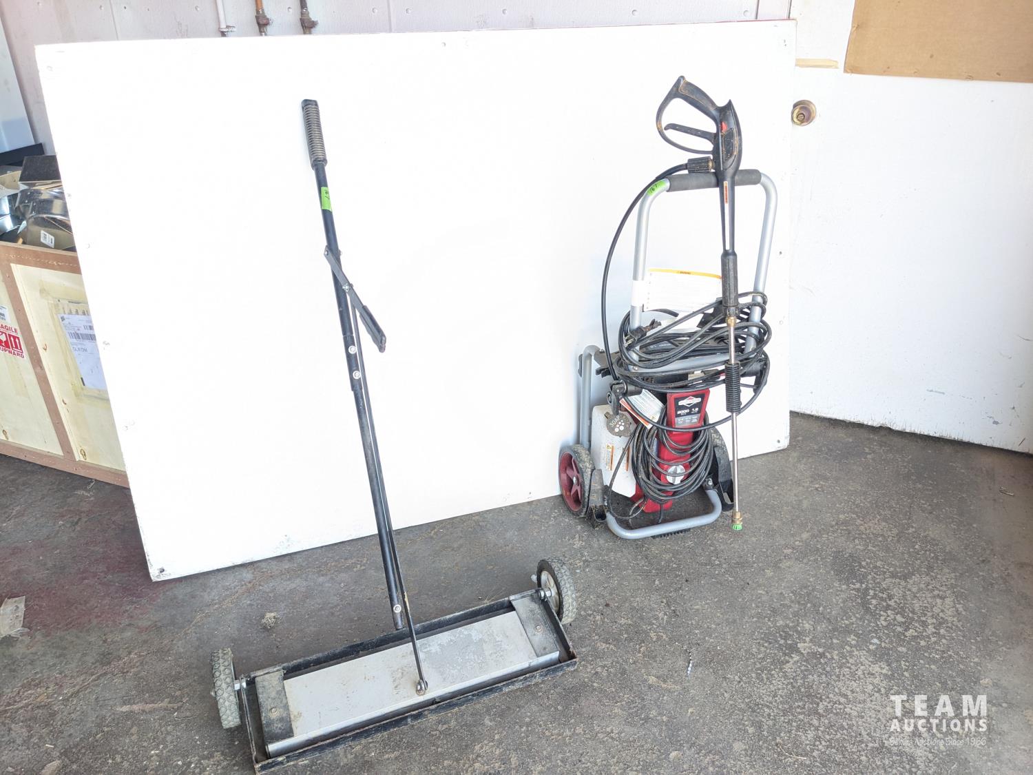 142 (1) 26 Inch Wheeled Shop Floor Magnet, (1) Briggs & Stratton Gas Pressure Washer