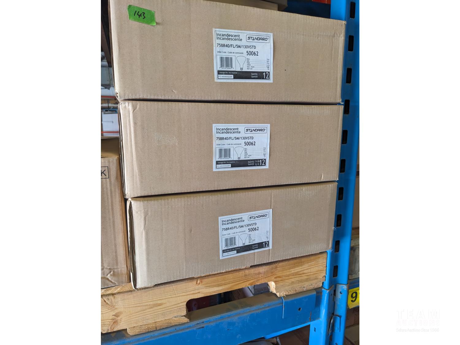 113 (6) Cases of 50 LED Light Bulbs, (23) Boxes of 12 75W Flood Lamps (Unused)