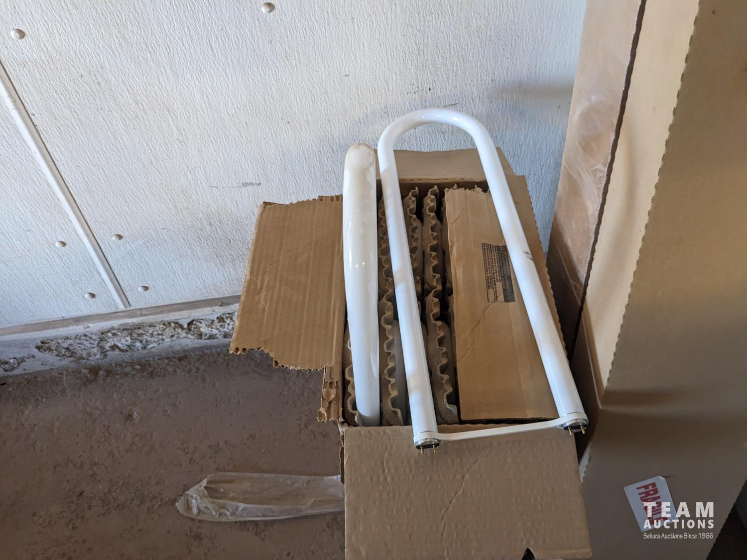 158 Qty of 8 Ft Florescent Light Tubes, Qty of U Shaped 7 Inch X 22 Inch Florescent Bulbs
