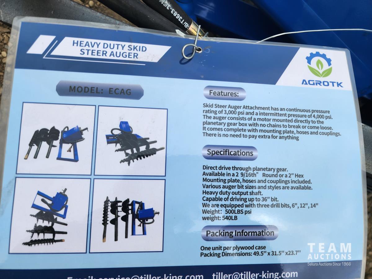 901 2023 Agrotk Hydraulic Auger - Skid Steer Attachment (Unused)