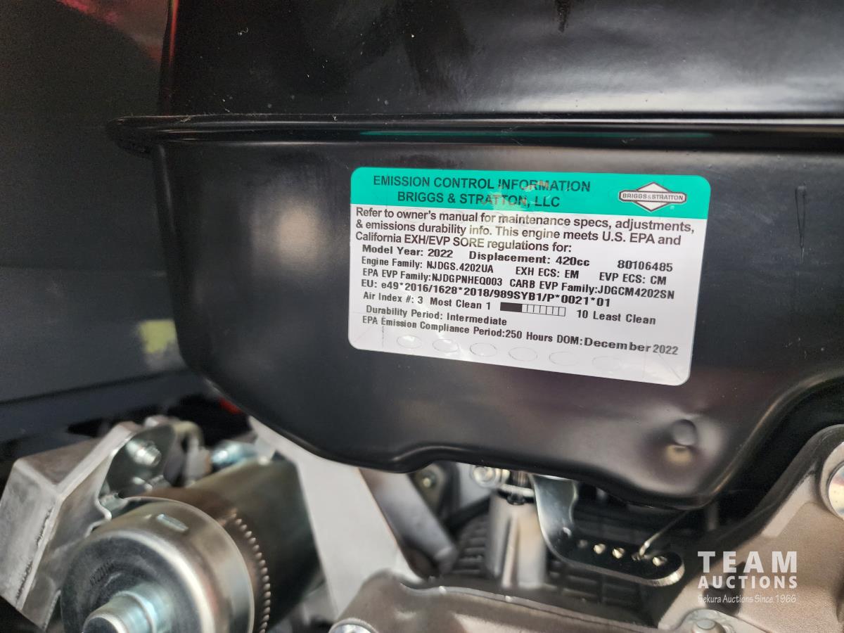 Briggs & Stratton engine, 7 inch track width, 15 inch digging bucket, 38 inch blade, 31 inch stick, aux hydraulic, dozer, canopy