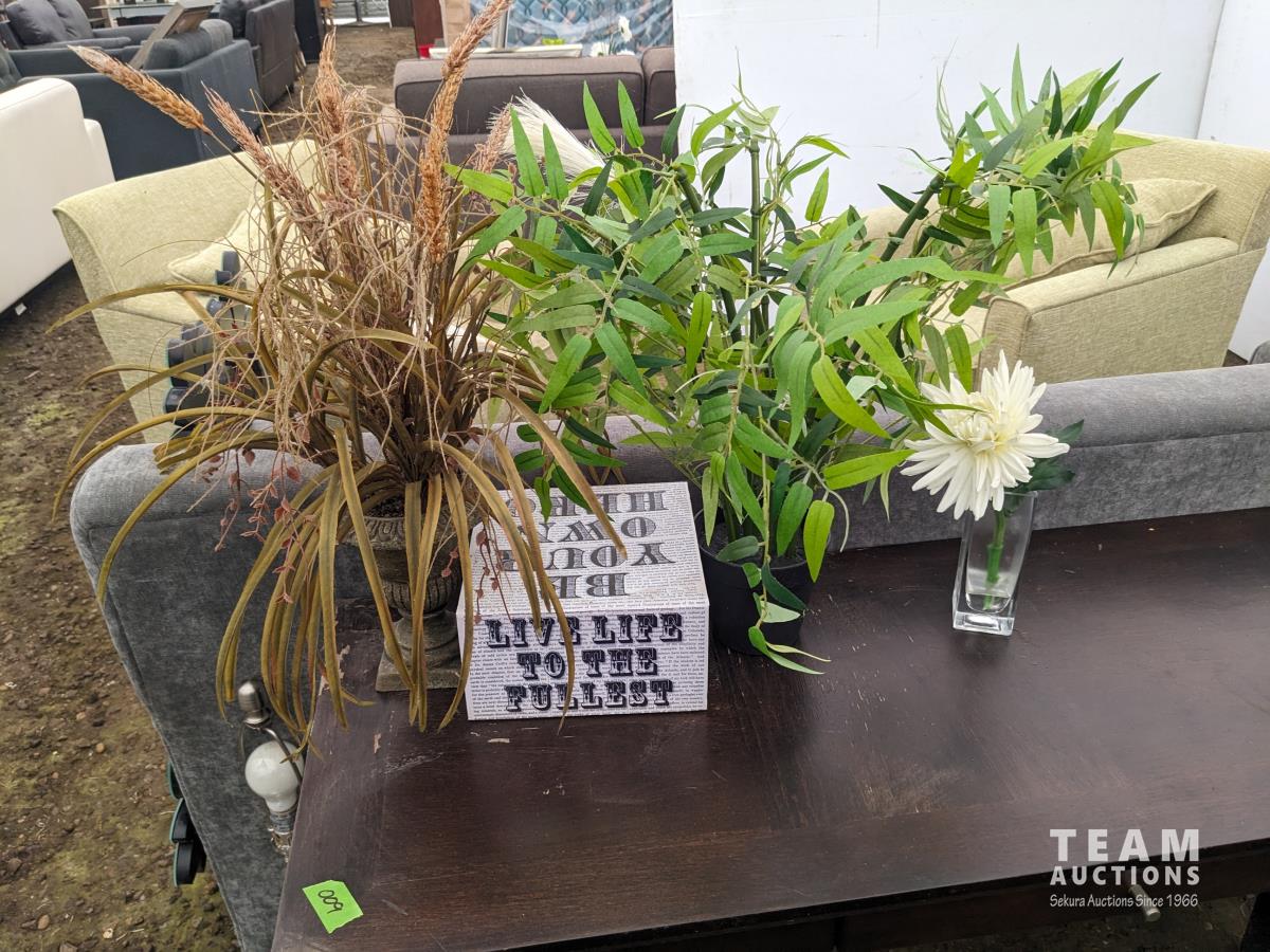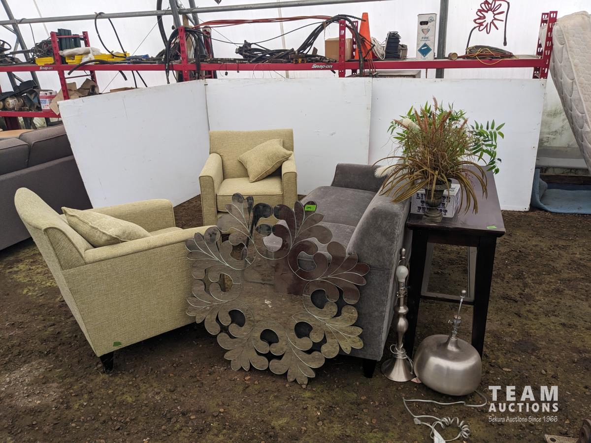 18 (2) Lounge Chairs, Love Seat, (2) Lamps, Side Table, (3) Artificial Plants, Wall Hanging