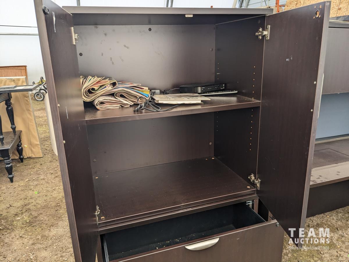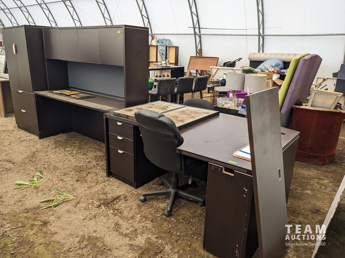 (1) desk 71 inch wide X 45 inch deep X 29 inch high, (1) desk 71 inch wide X 24 inch deep < 65 inch high, cabinet 35 inch wide X 22 inch deep X 66 inch high