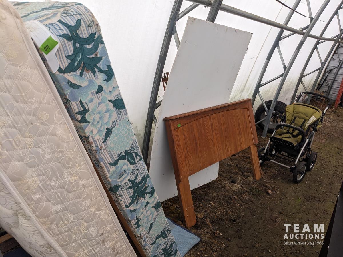 20 (2) Single Mattresses, Head Board, Stroller