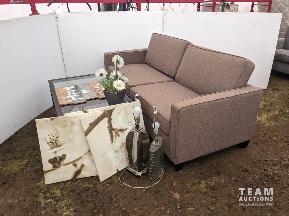 17 (3) Prints, (2) Lamps, Coffee Table, Love Seat
