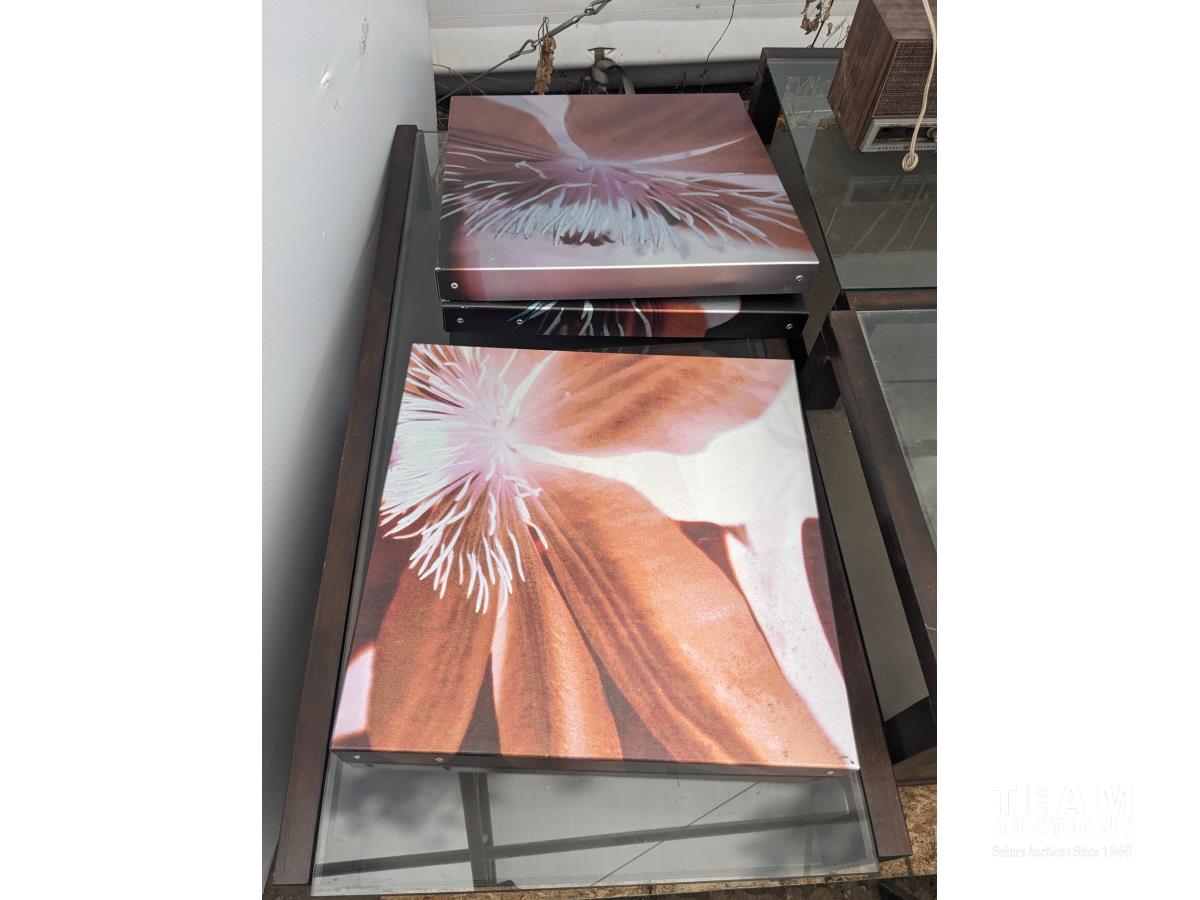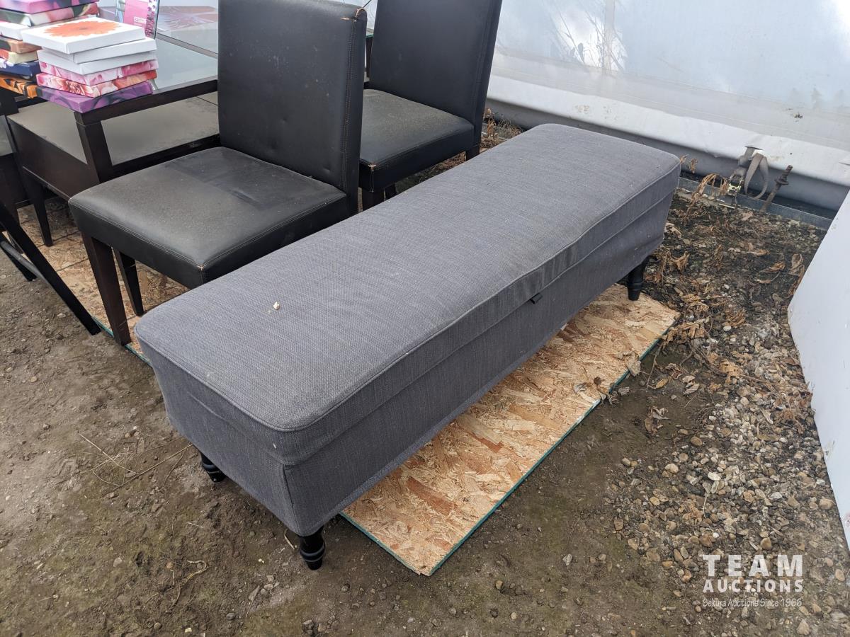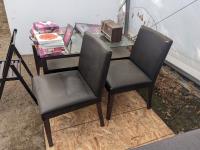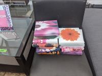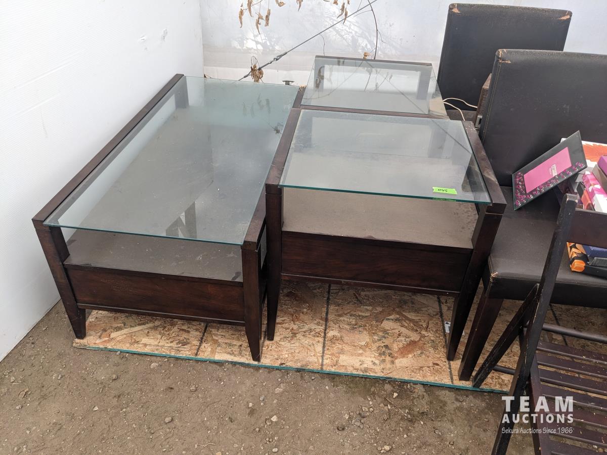 (2) chairs, folding chair, (2) side tables, 24 inch wide X 20 inch deep X 24 inch high, (1) side table 64 inch wide X 24 inch deep X 19 inch high, ottoman, qty of pictures, picture frame and radio