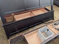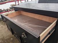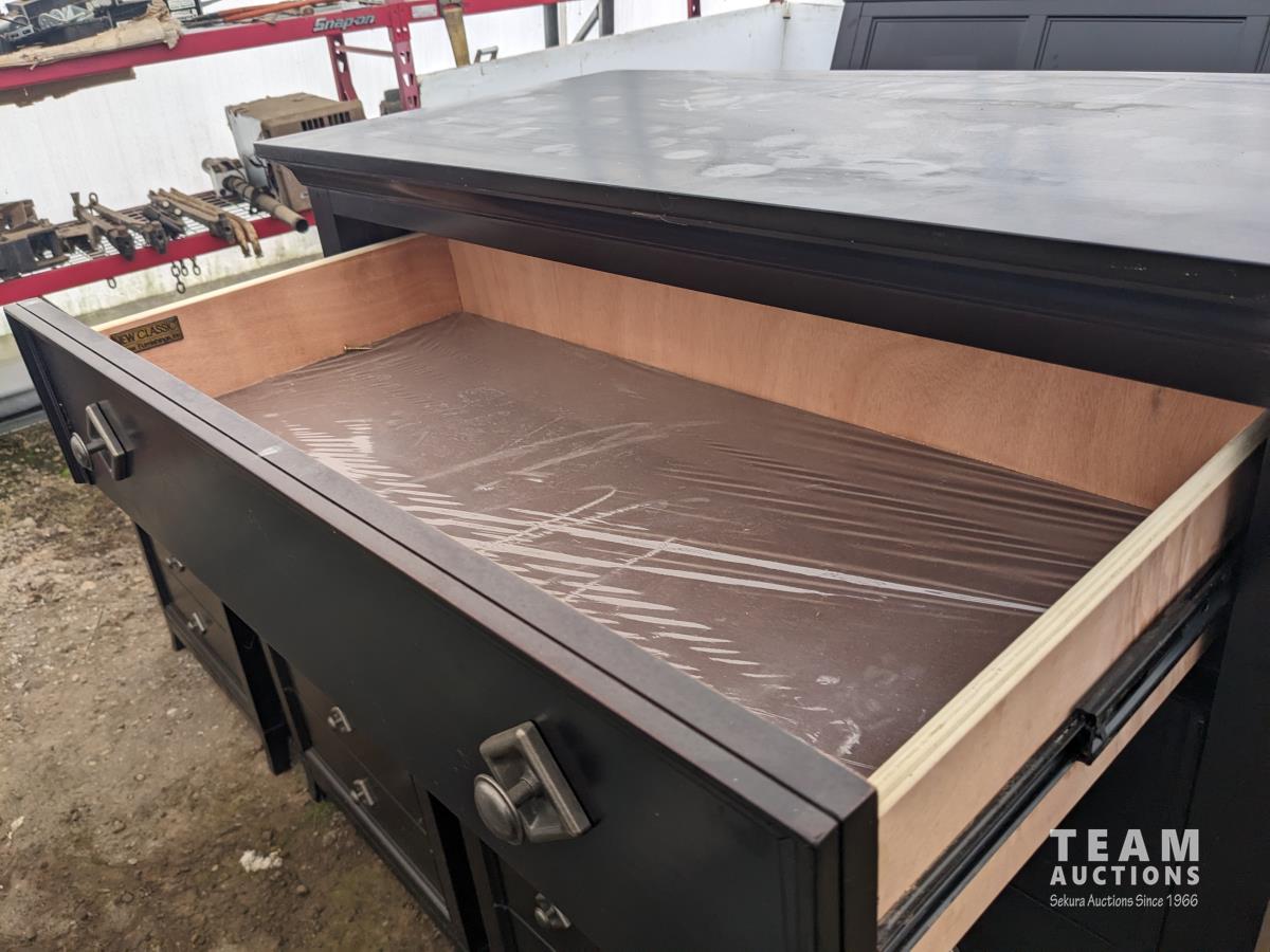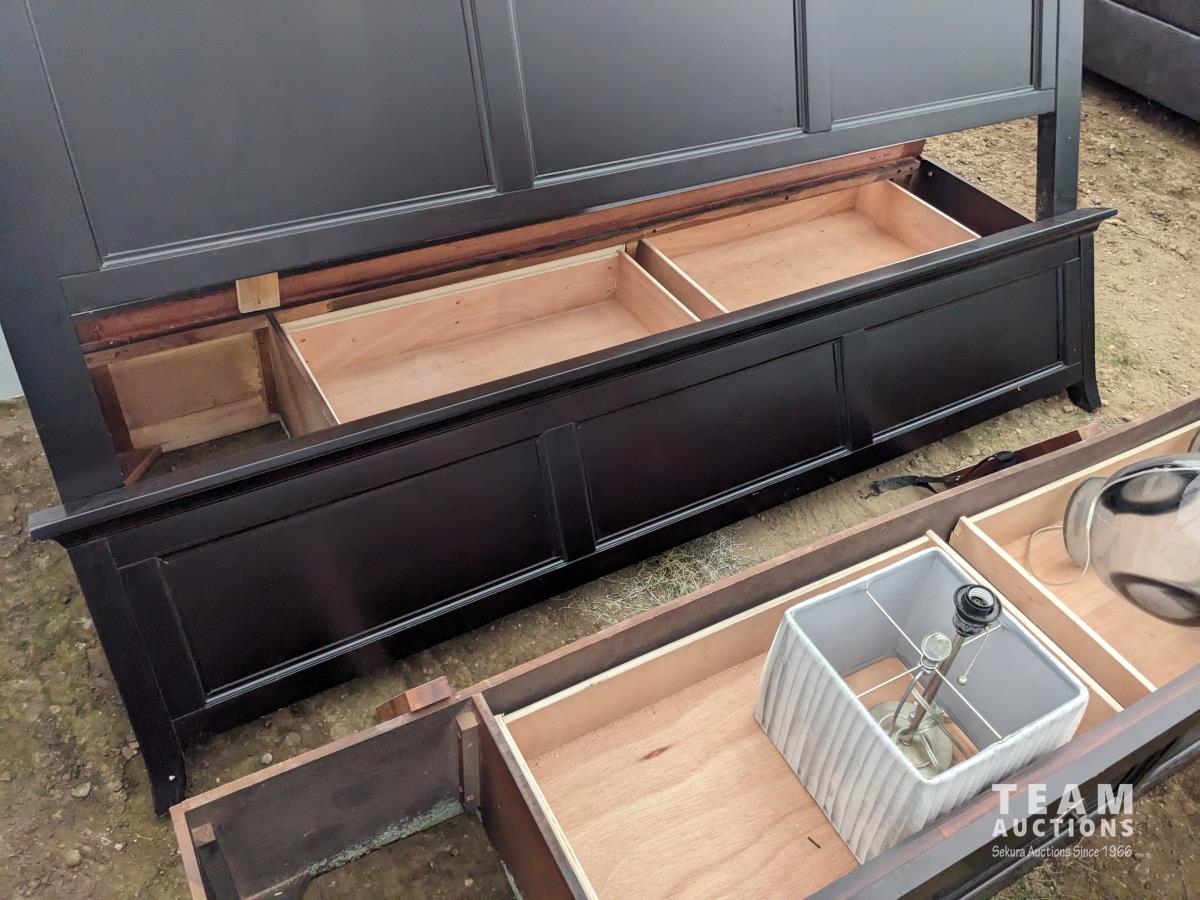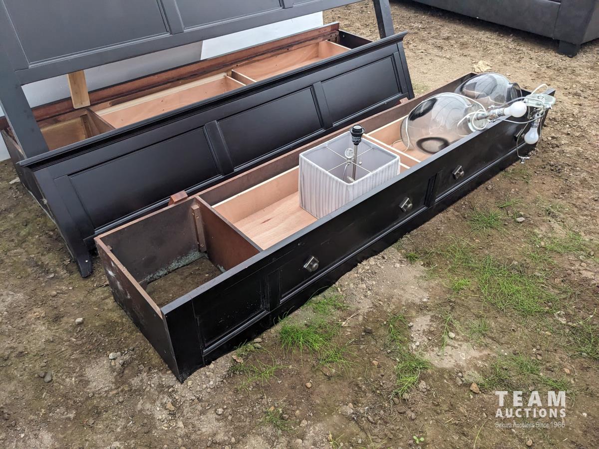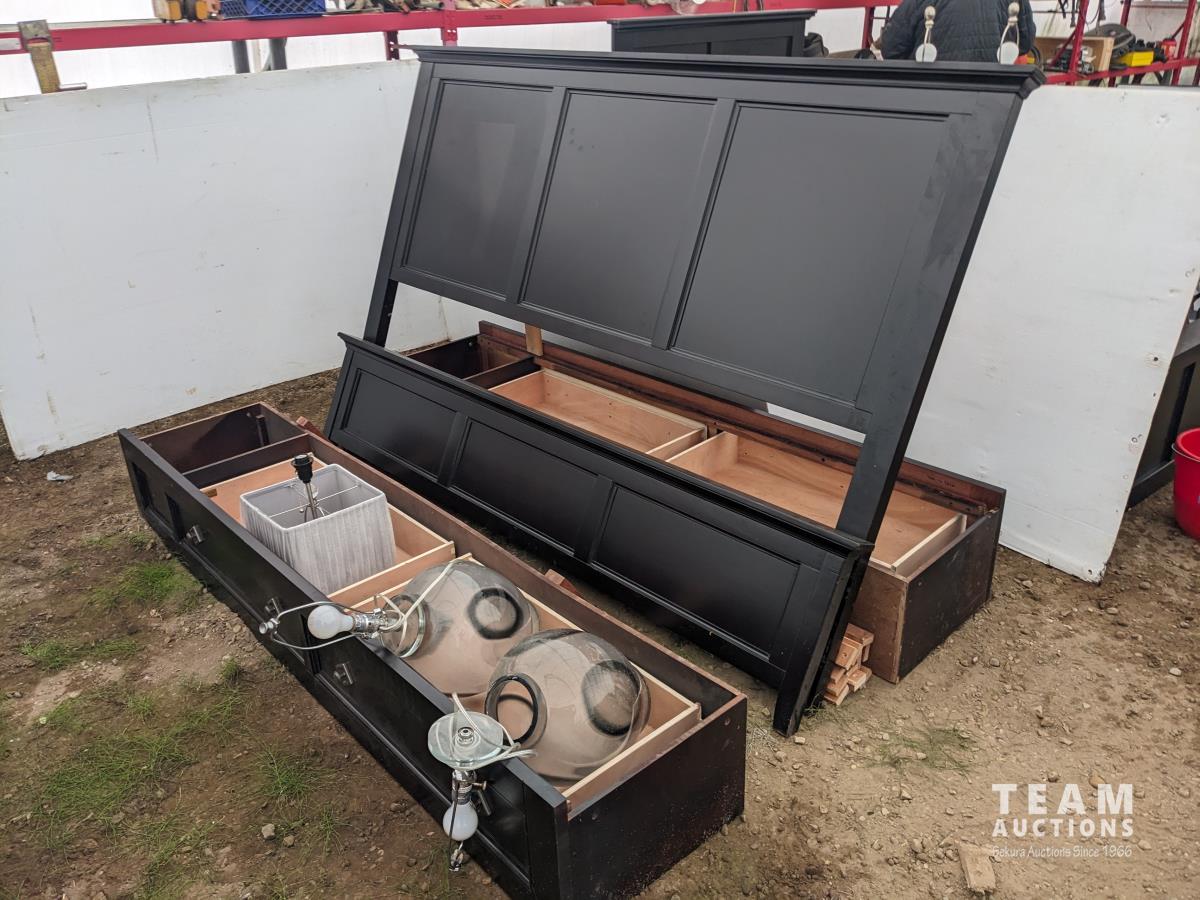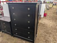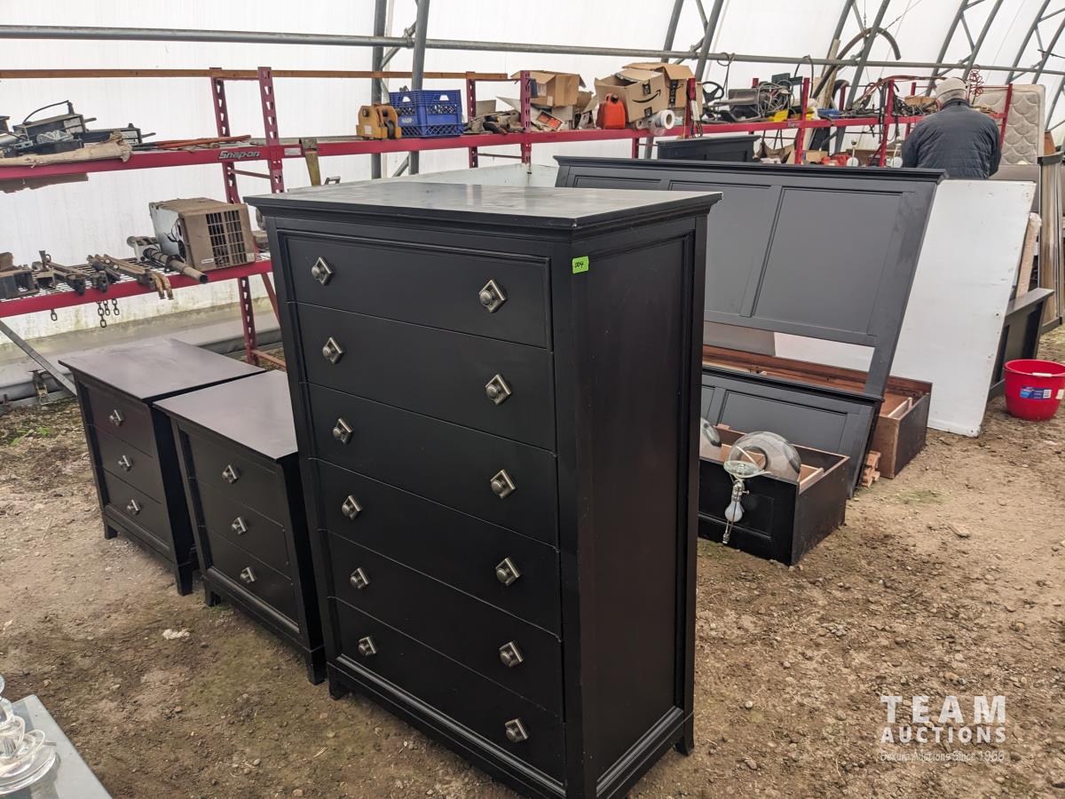 (1) 6 drawer cabinet 36.5 inch w X 19 inch d X 55.5 inch high, (2) night tables 29 inch w X 17 inch d X 29 inch high, 80 inch head board, under bed drawers, mattress slats
