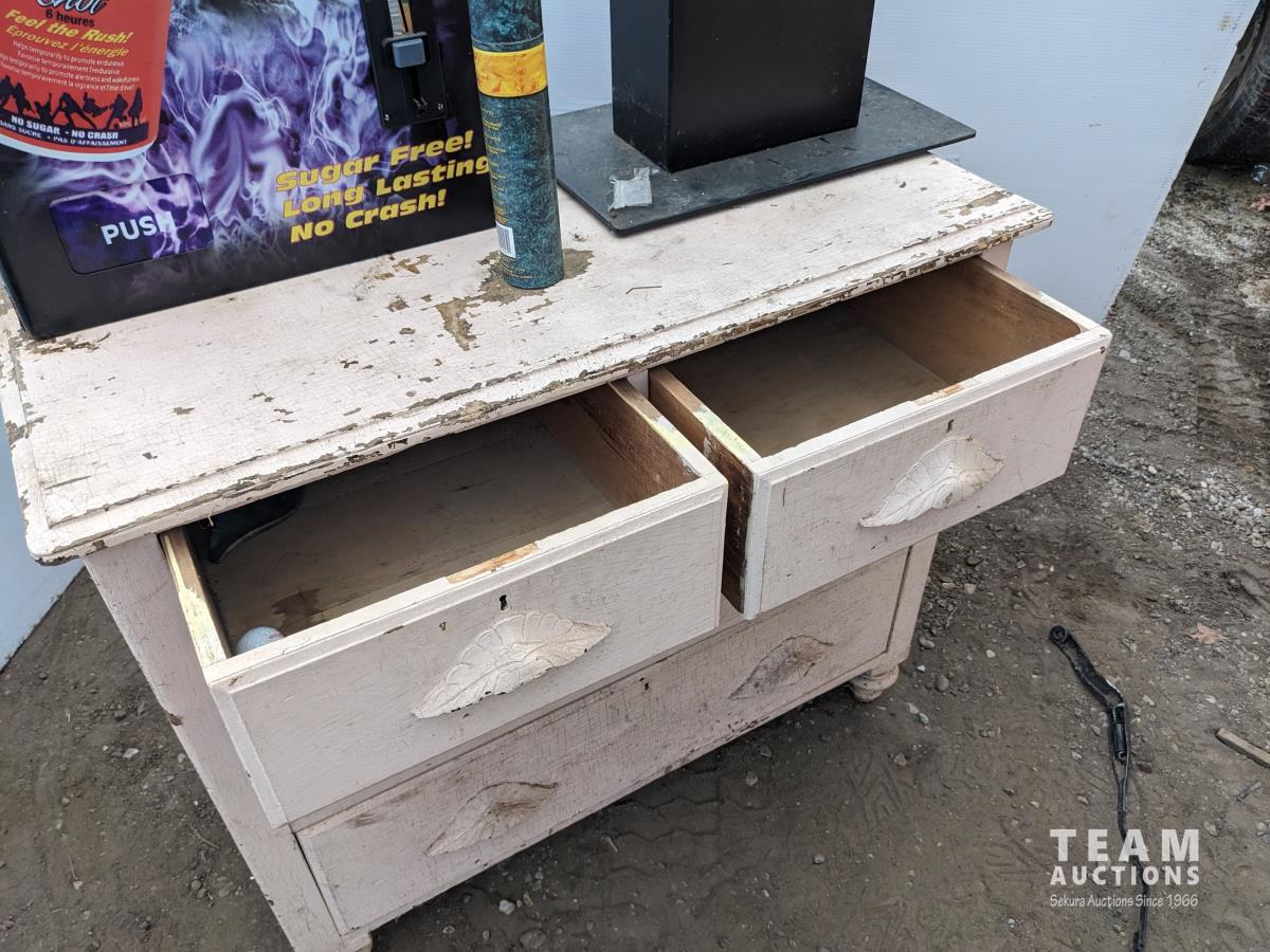 38 Chest of Drawers, Fireplace Matches, Energy Center Dispenser with Stand