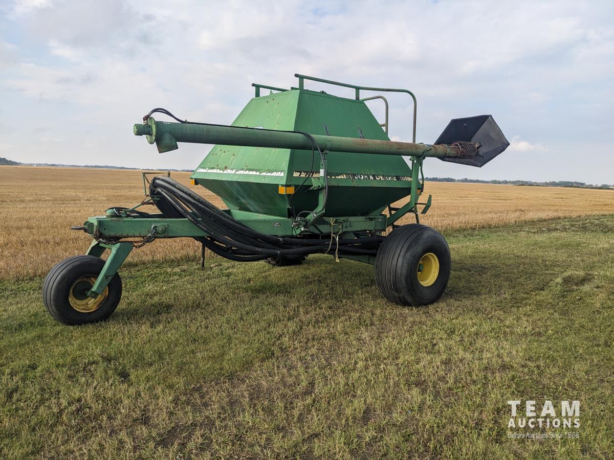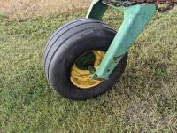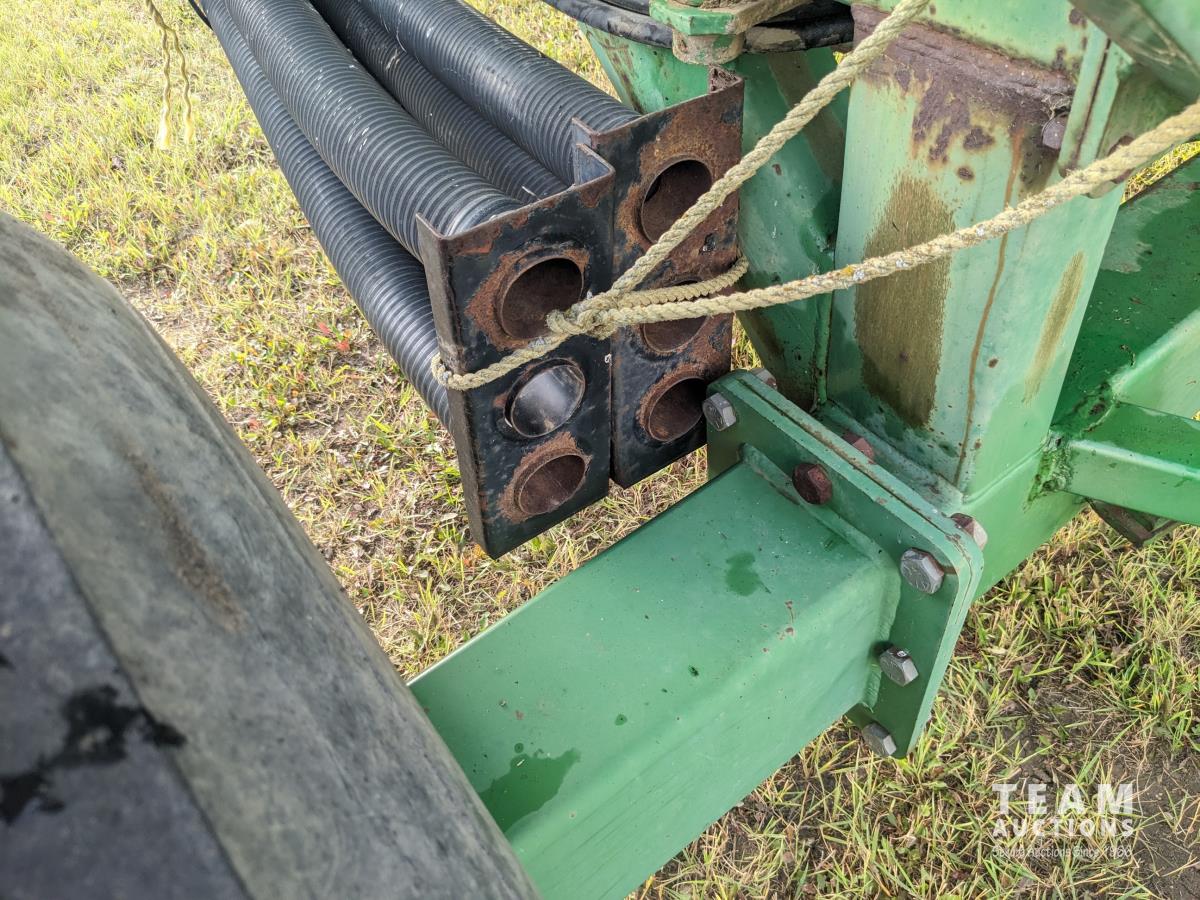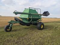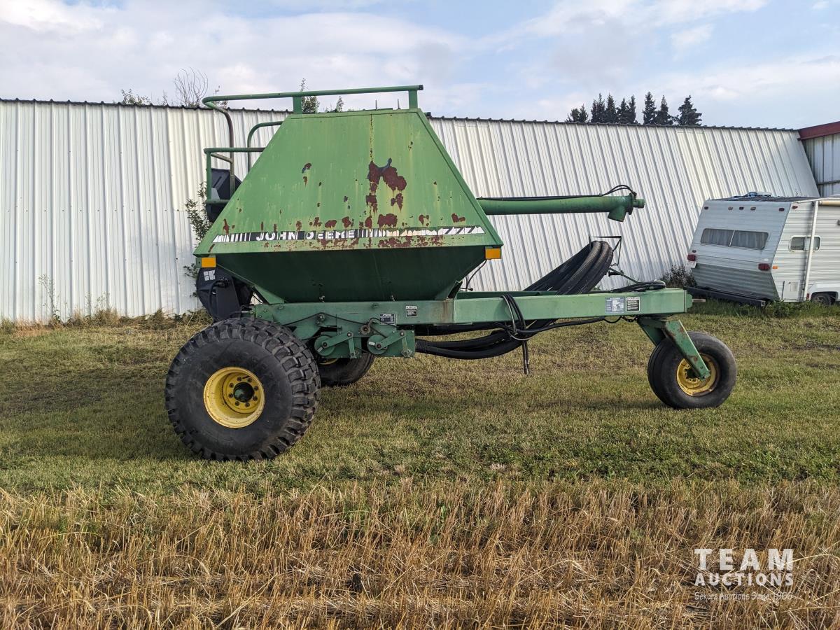 12 inch spacing, sweeps, Degelman 3 bar harrows, Gandy 5424 hydraulic drive applicator, walking axles on main frame and wings, John Deere 777 dual compartment air cart, course and fine feed rolls, single hydraulic fan, 21.5-16 tires