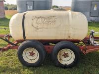 2200 liter poly tank, no pump, 11L-15 tires on walking axles