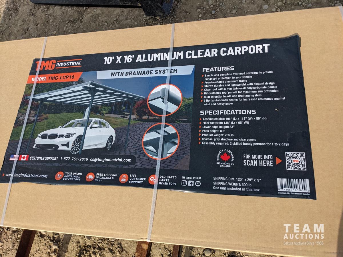 4239 TMG Industrial LCP16 10 Ft X 16 Ft Aluminum Clear Carport (Unused)