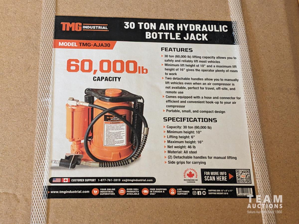 4013 TMG Industrial AJA30 30 Ton Air Hydraulic Bottle Jack (Unused)