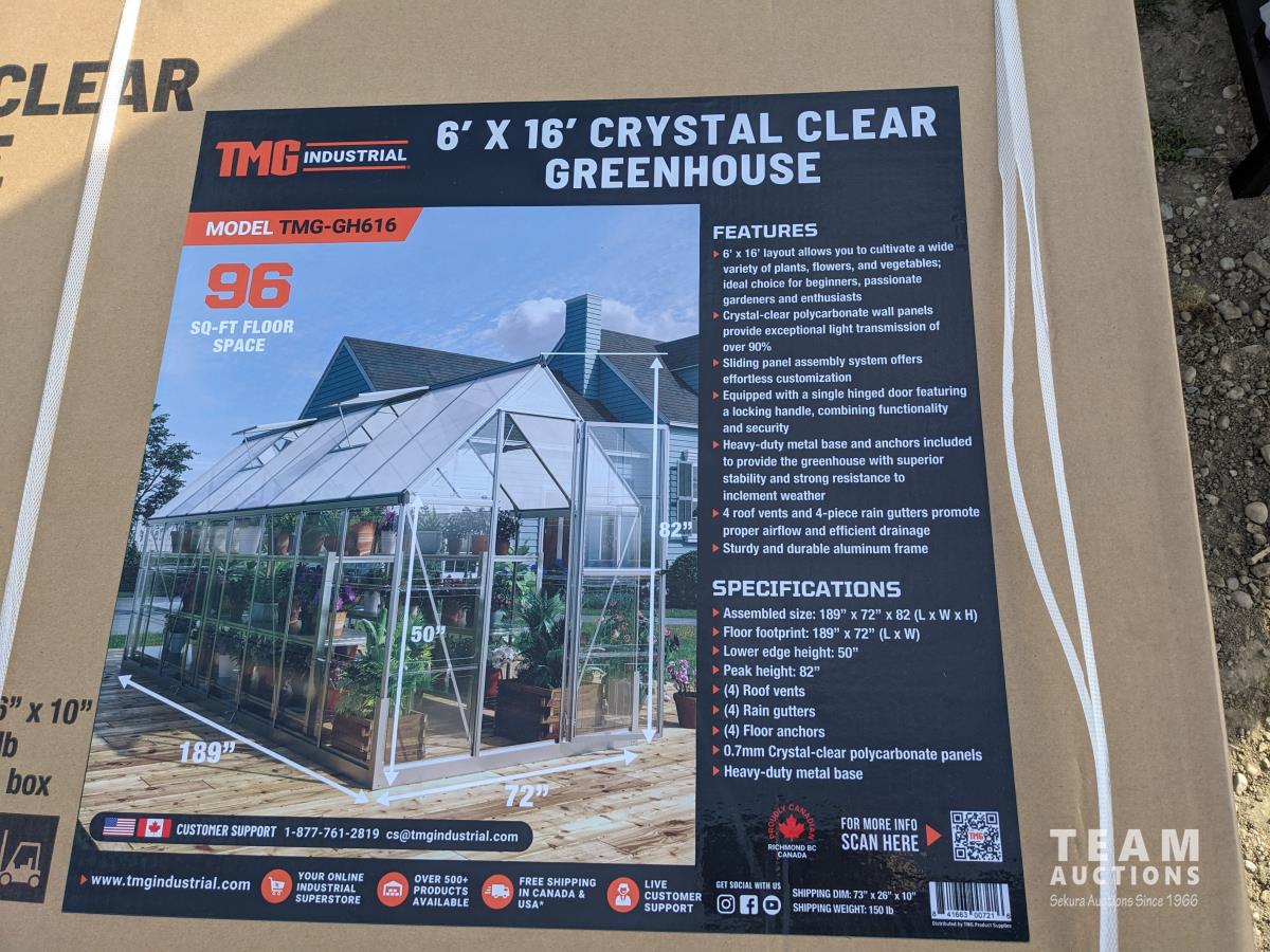 4226 TMG Industrial GH616 6 Ft X 16 Ft Crystal Clear Greenhouse (Unused)