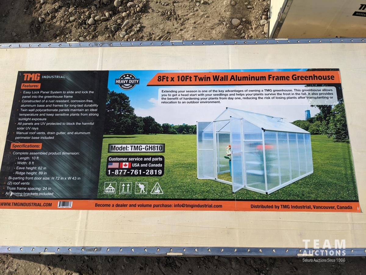 4227 TMG Industrial GH810 8 Ft X 10 Ft Twin Wall Aluminum Frame Greenhouse (Unused)