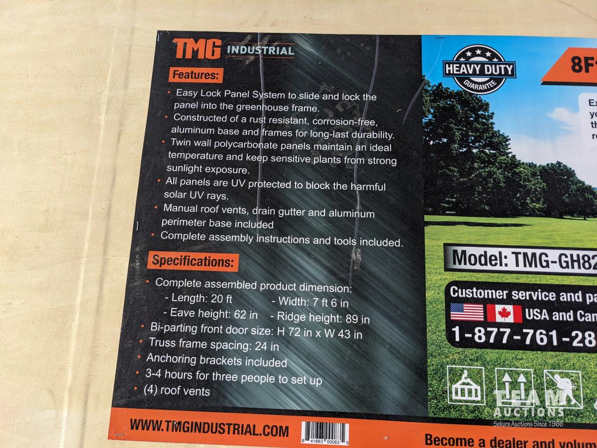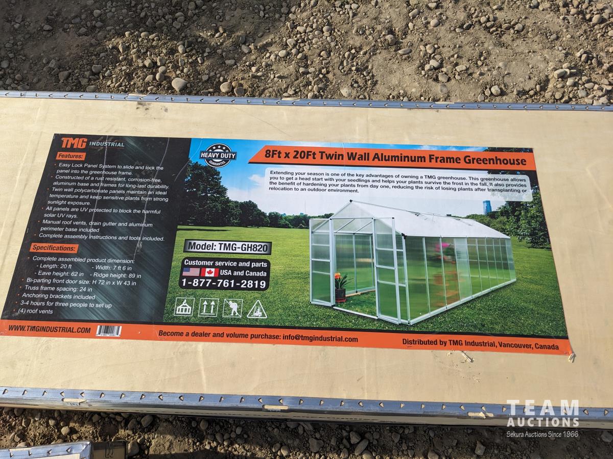 4228 TMG Industrial GH820 8 Ft X 20 Ft Twin Wall Aluminum Frame Greenhouse (Unused)