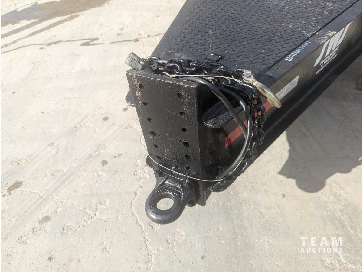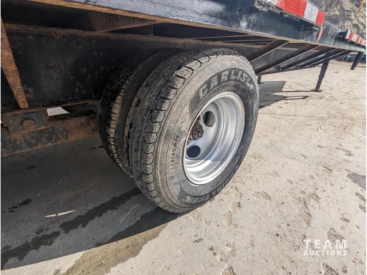 96 inch wide deck, 60 inch beaver tails, wood deck, flip over ramps, electric brakes, spring suspension, tool / storage box, rub rails, stake pockets, ST235/80R16 tires