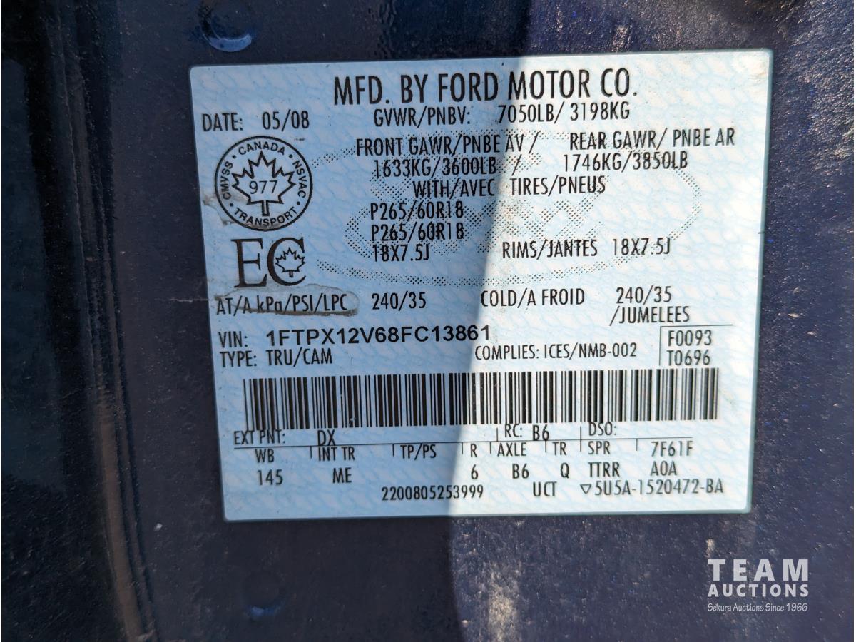 316 2008 Ford F150 XLT 4X4 Extended Cab Pickup Truck (Inoperable)
