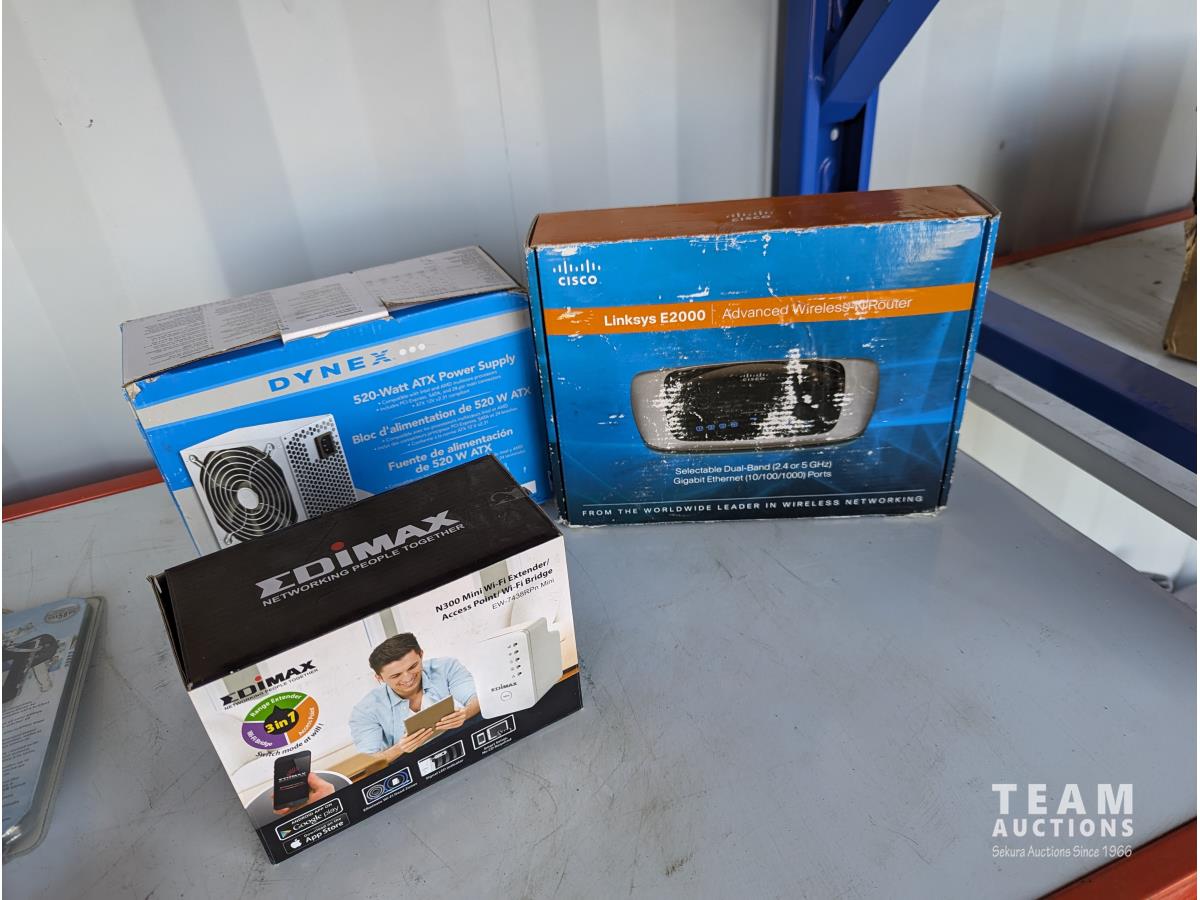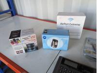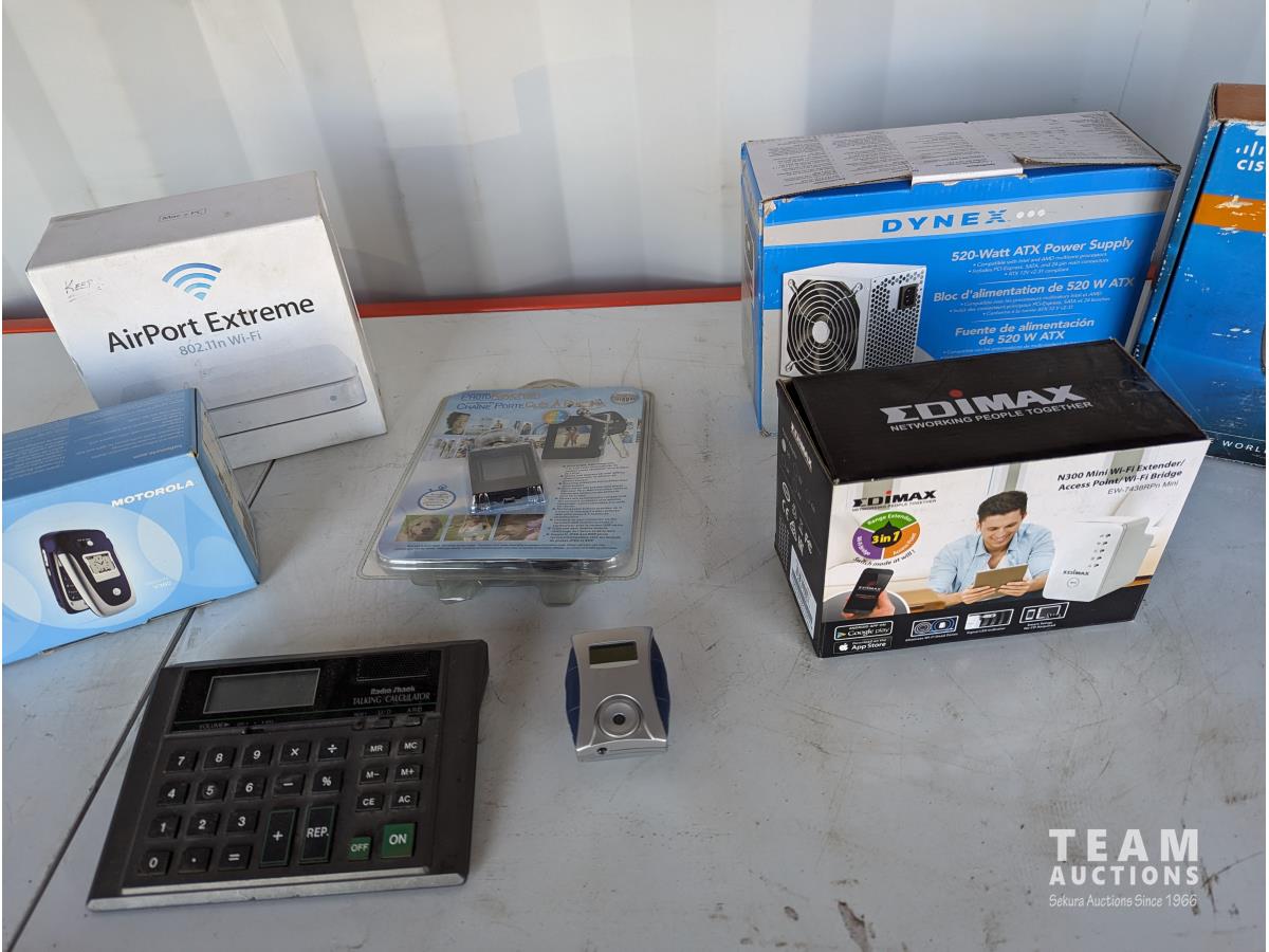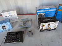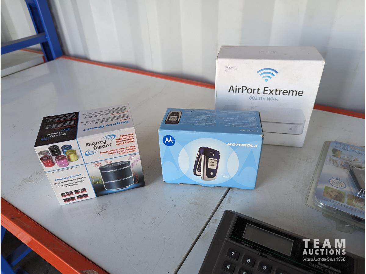 Speaker, flip phone, airport extreme, pager, power supply & wifi extender