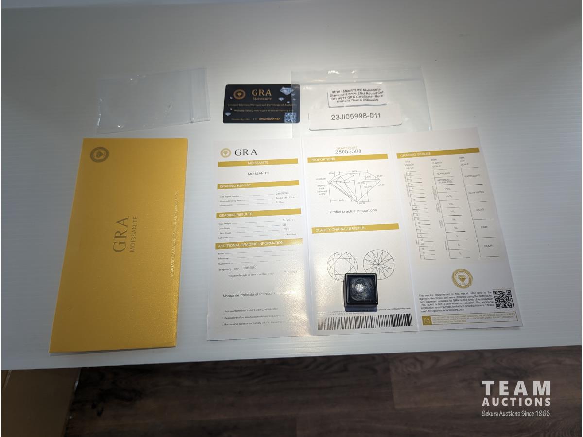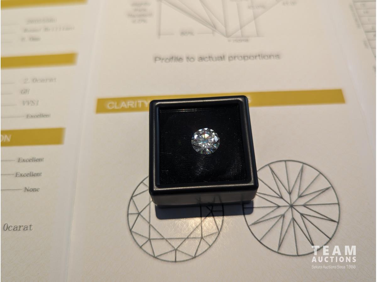 153 Moissanite 8.0 mm 2.0 Carat Round Cut Diamond (Unused)