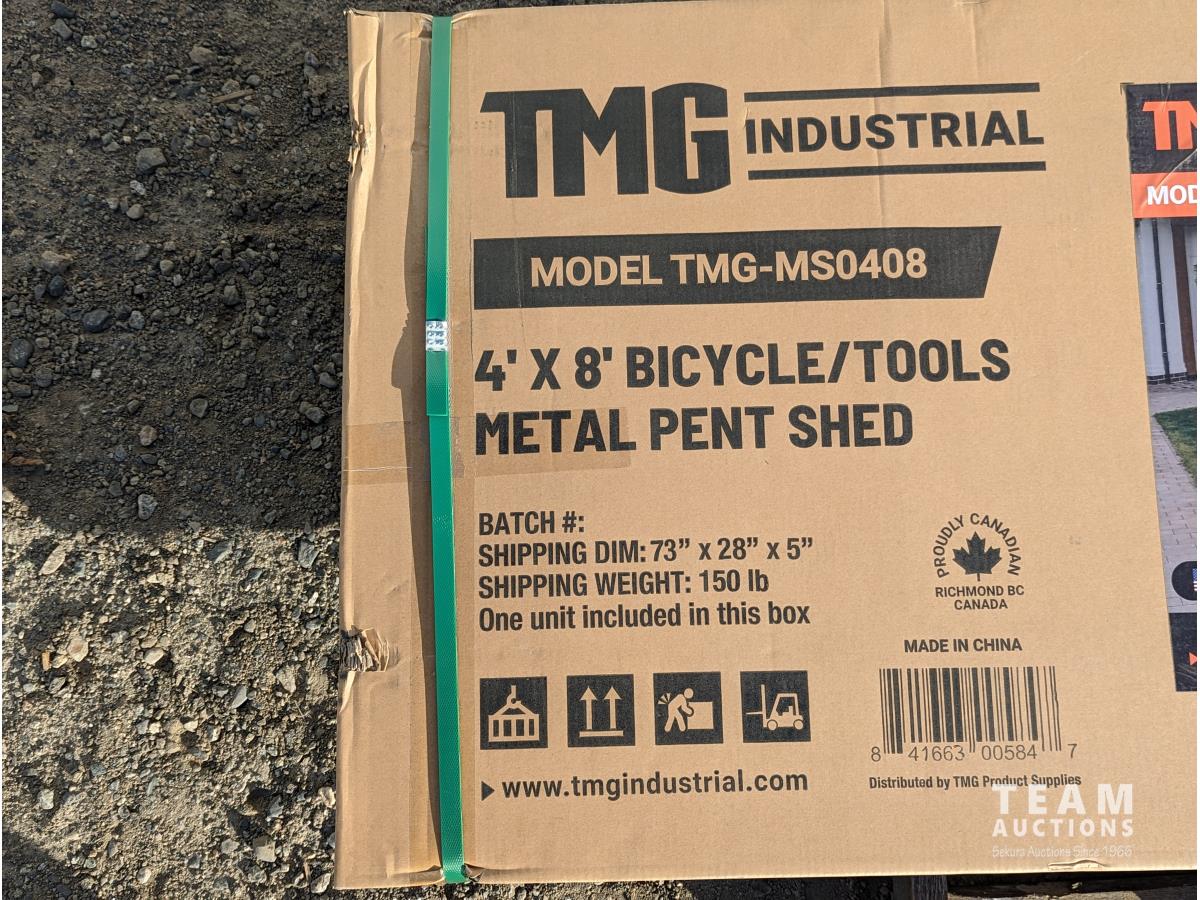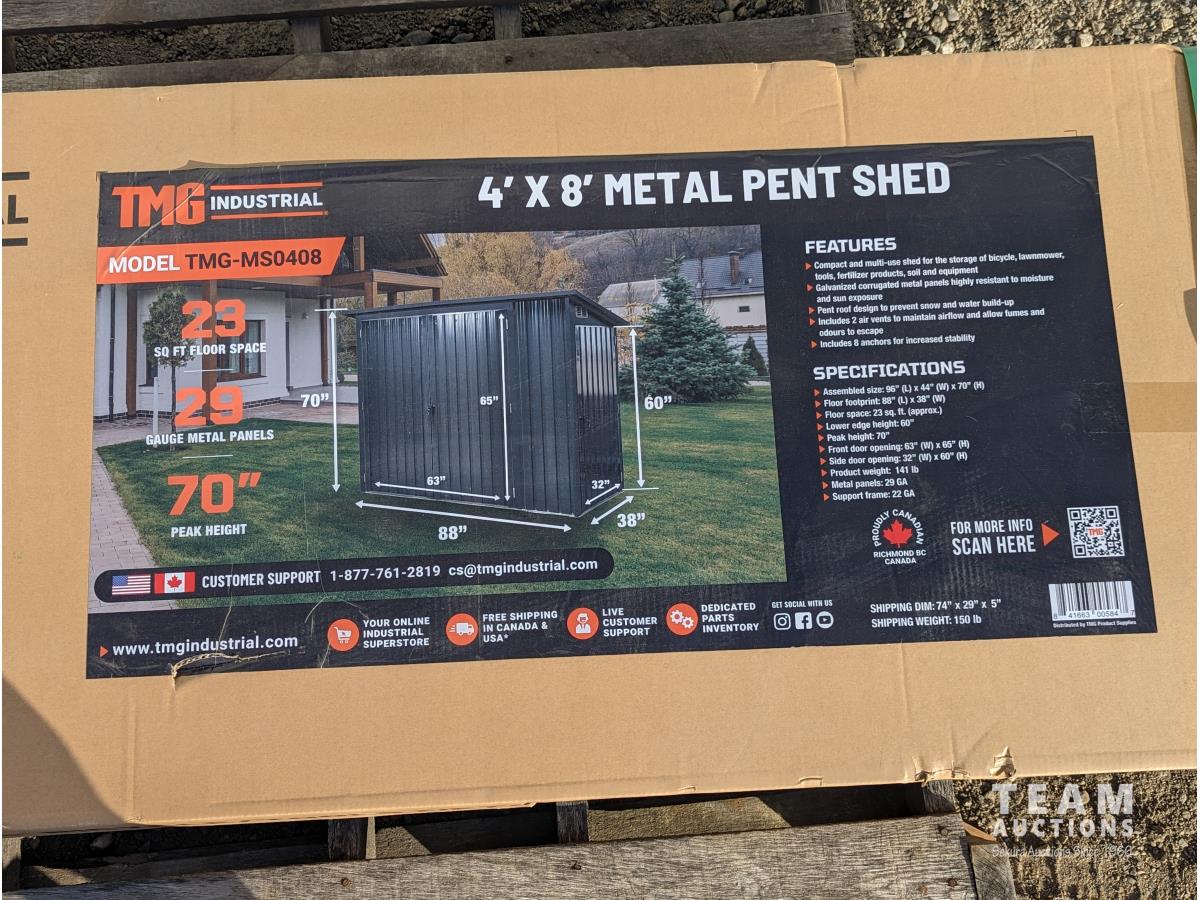 187 TMG Industrial MS0408 4 Ft X 8 Ft Bicycle Metal Pent Shed (Unused)