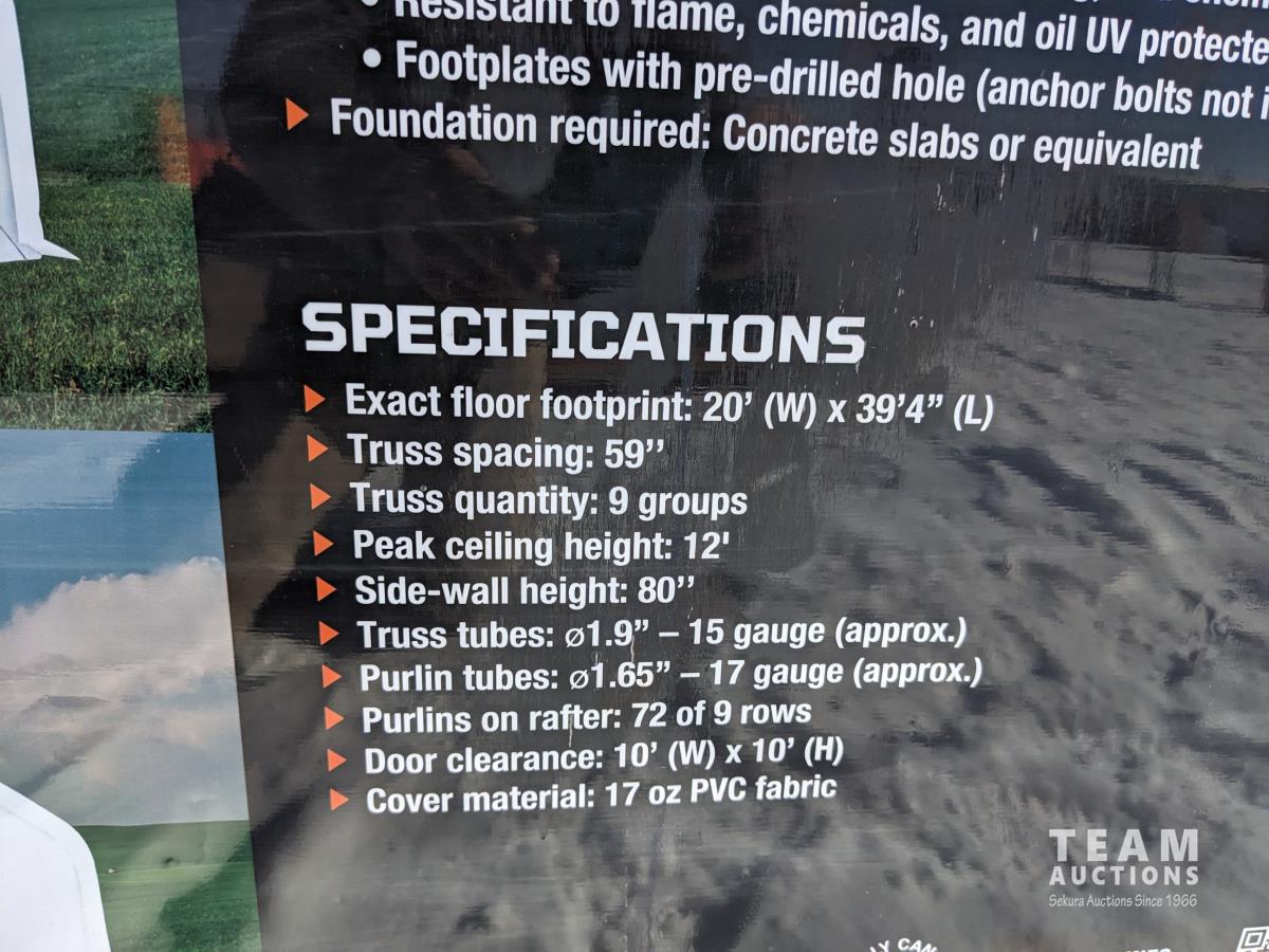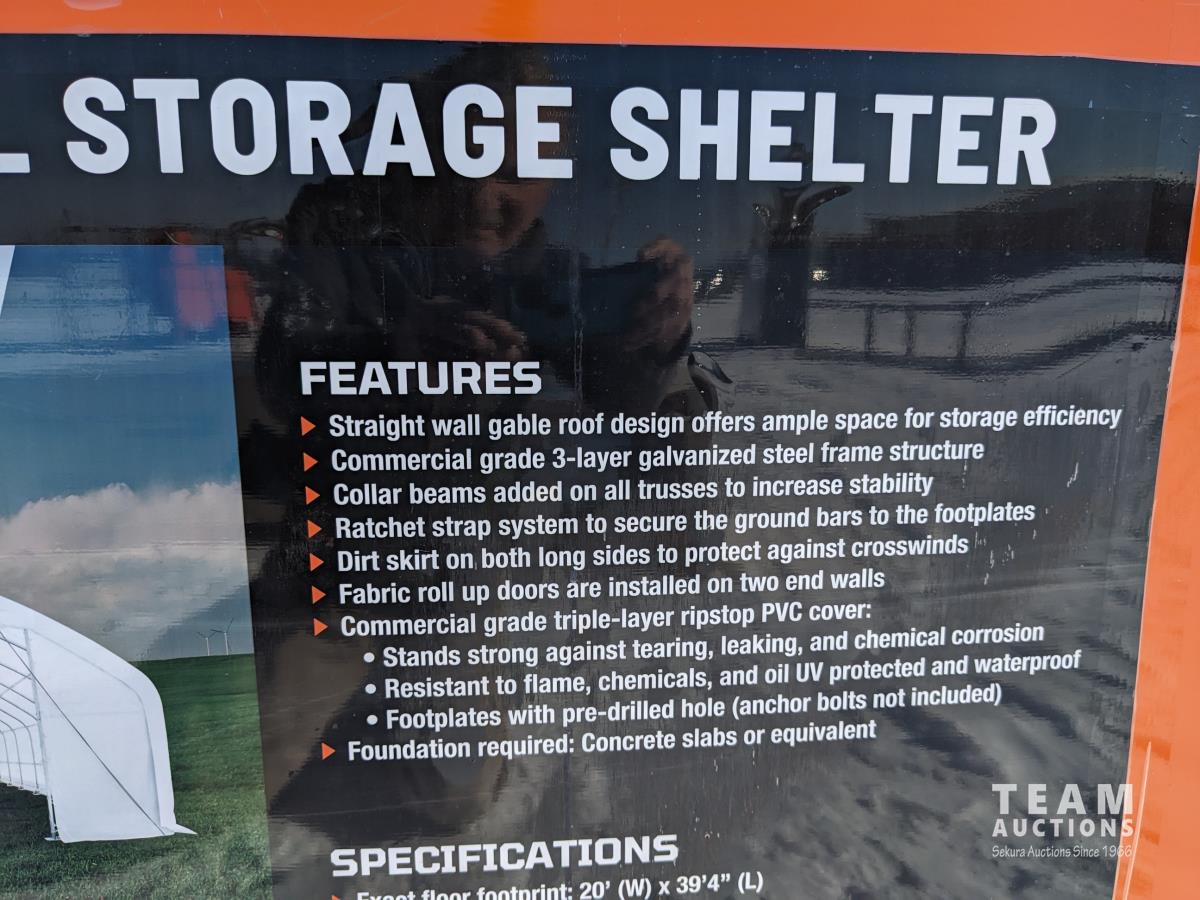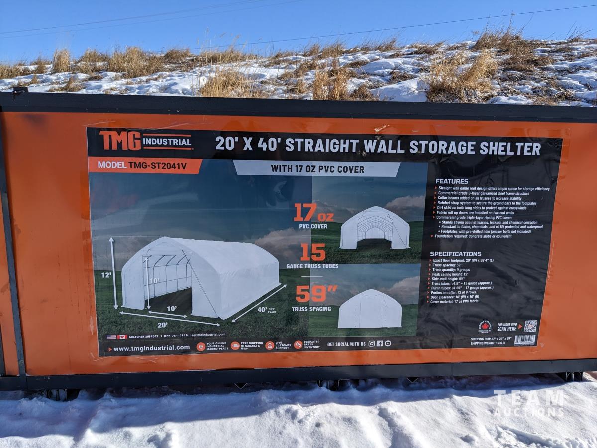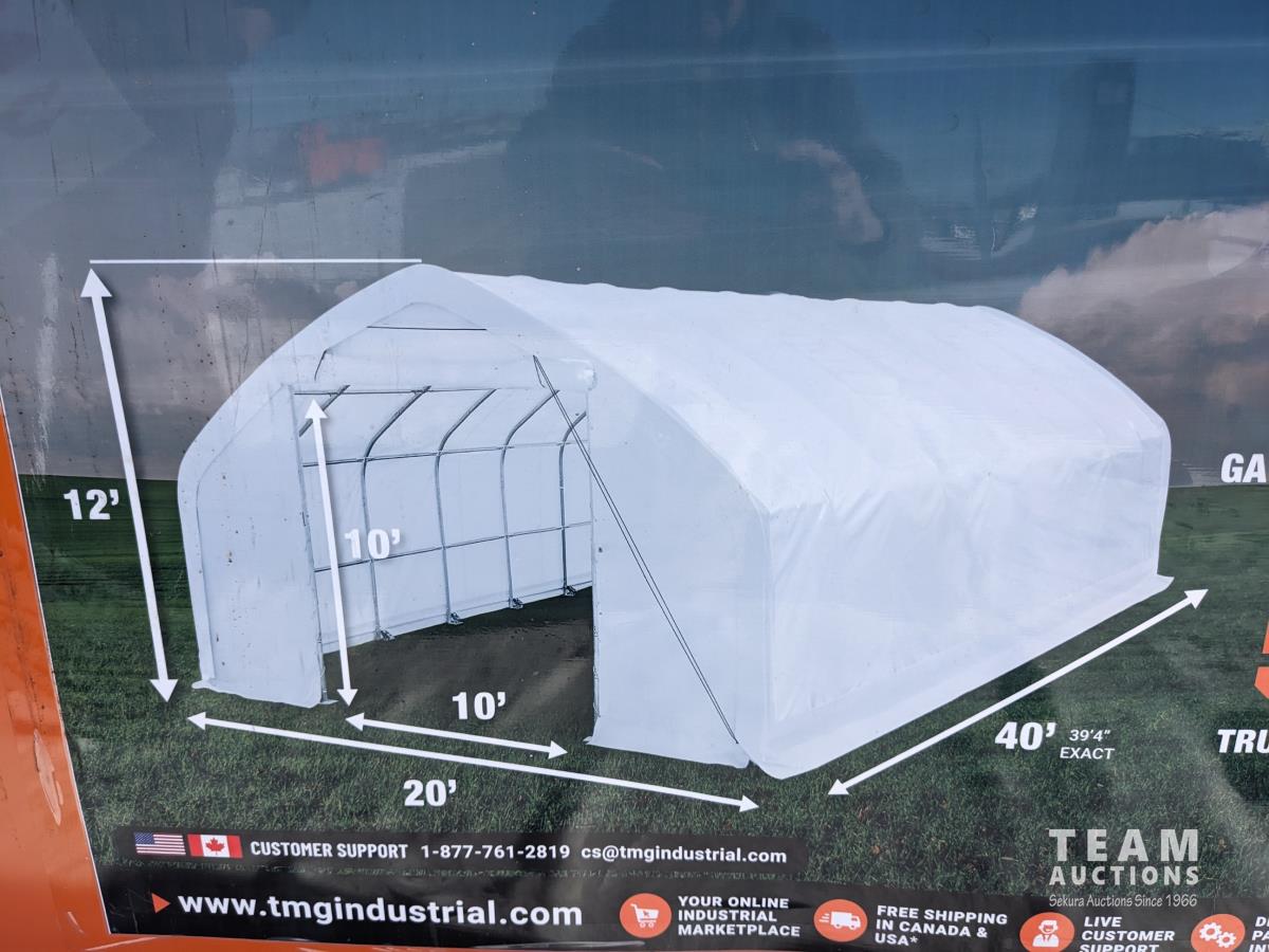 181 TMG Industrial ST2041V 20 Ft X 40 Ft Straight Wall Peak Ceiling Storage Shelter (Unused)