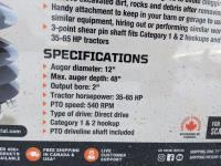 366 TMG Industrial TPD12 48” 3 PT Hitch Hydraulic Assist Post Hole Digger (Unused)