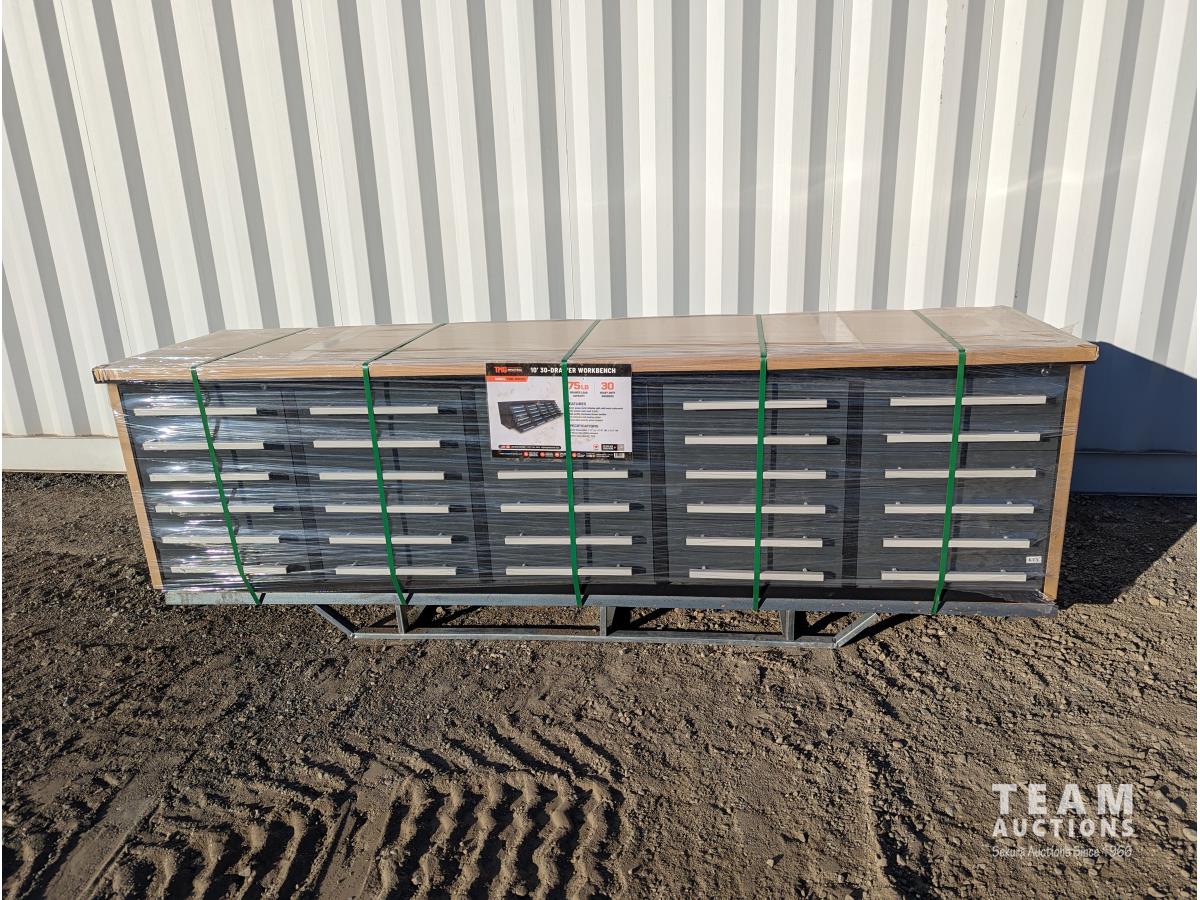 245 TMG Industrial WB30D 10 Ft 30-Drawer Workbench (Unused)