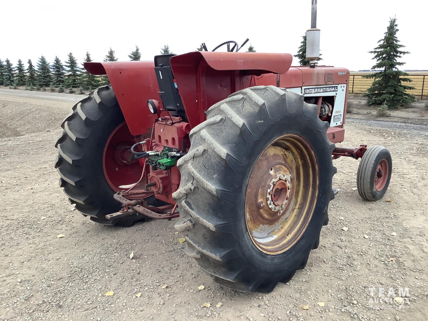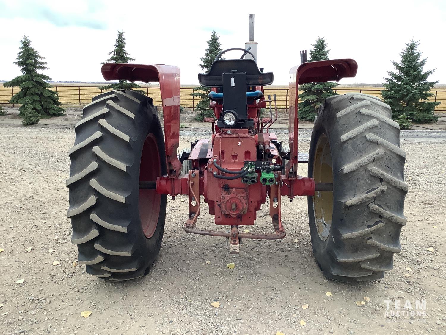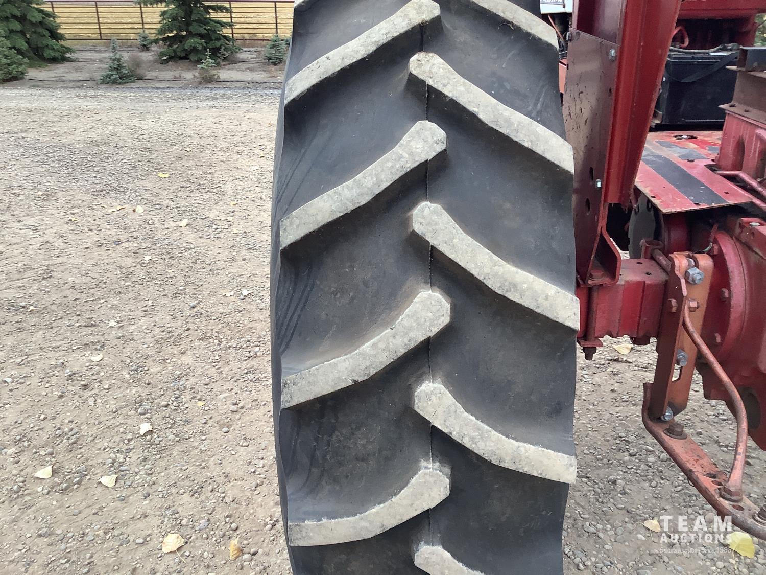 International 6 cylinder gas engine, 10 speed partial power shift transmission, 540 PTO, 2 rear hydraulic outlets, 18.4-34 rear tires