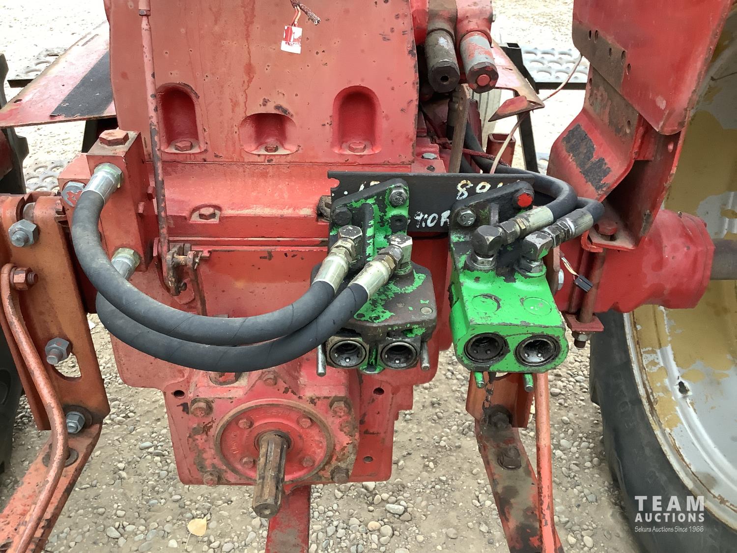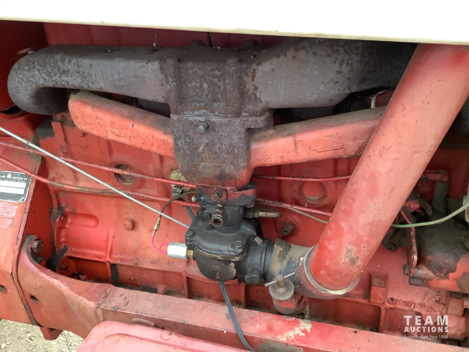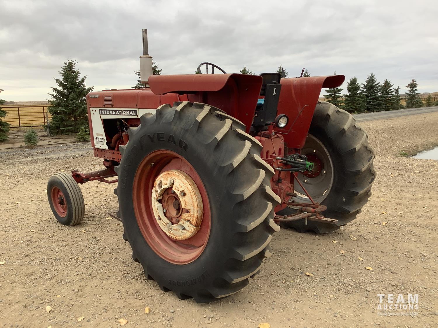 International 6 cylinder gas engine, 10 speed partial power shift transmission, 540 PTO, 2 rear hydraulic outlets, 18.4-34 rear tires